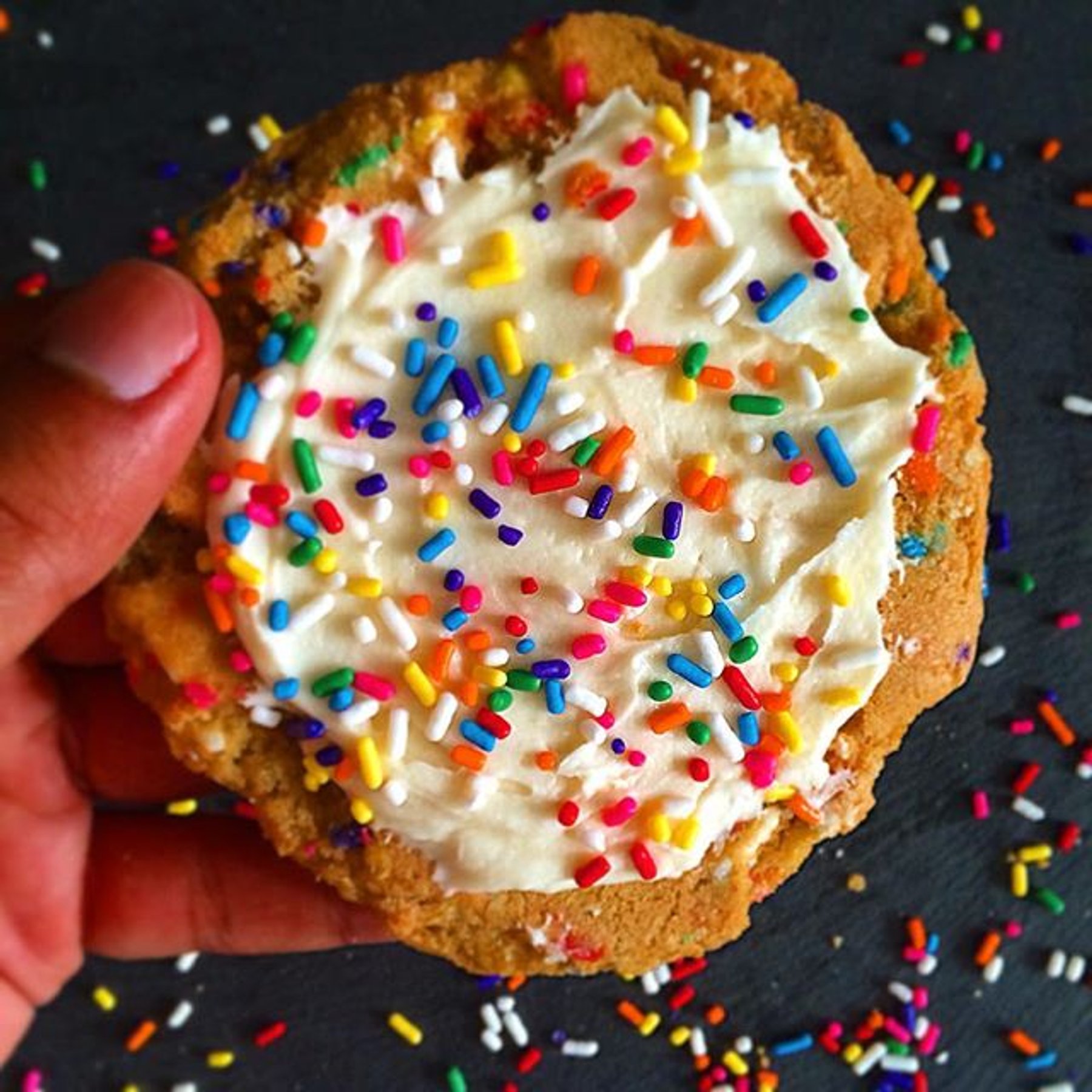 When I visited New York last summer, I found probably best cookie shop ever. It is called Schmackary’s, they had the biggest variety of cookies available at their store and each day the shop has a different of selection of cookies on offer, so there is something different everyday to try! Since I can not get cookies like this in the UK, I have decide to make by own. One of my favourites was the funfetti cookie; it is a simple cookie with a rich vanilla flavour and with a chewy center. It is kin