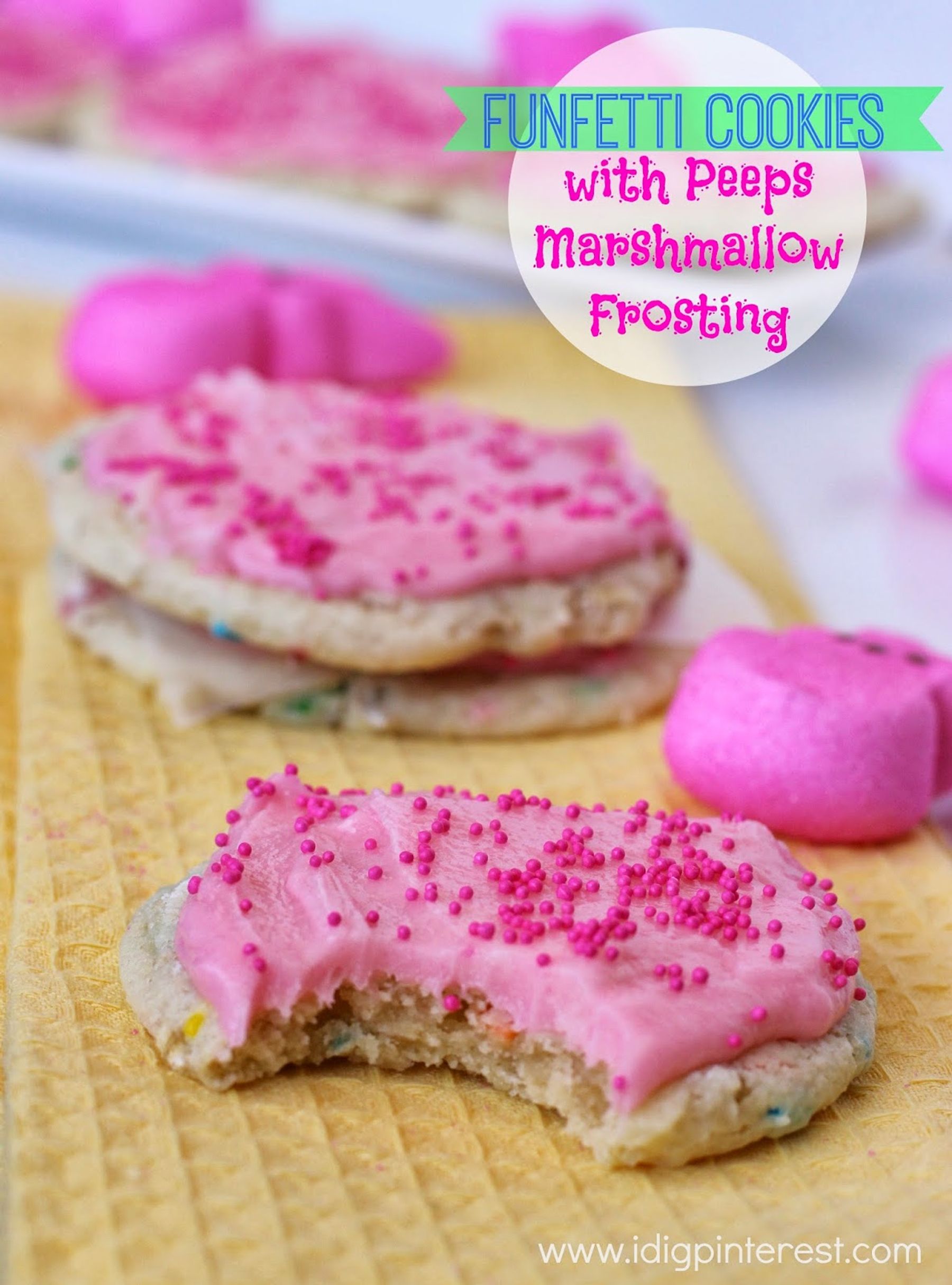 Funfetti Cookies with Peeps Marshmallow Frosting