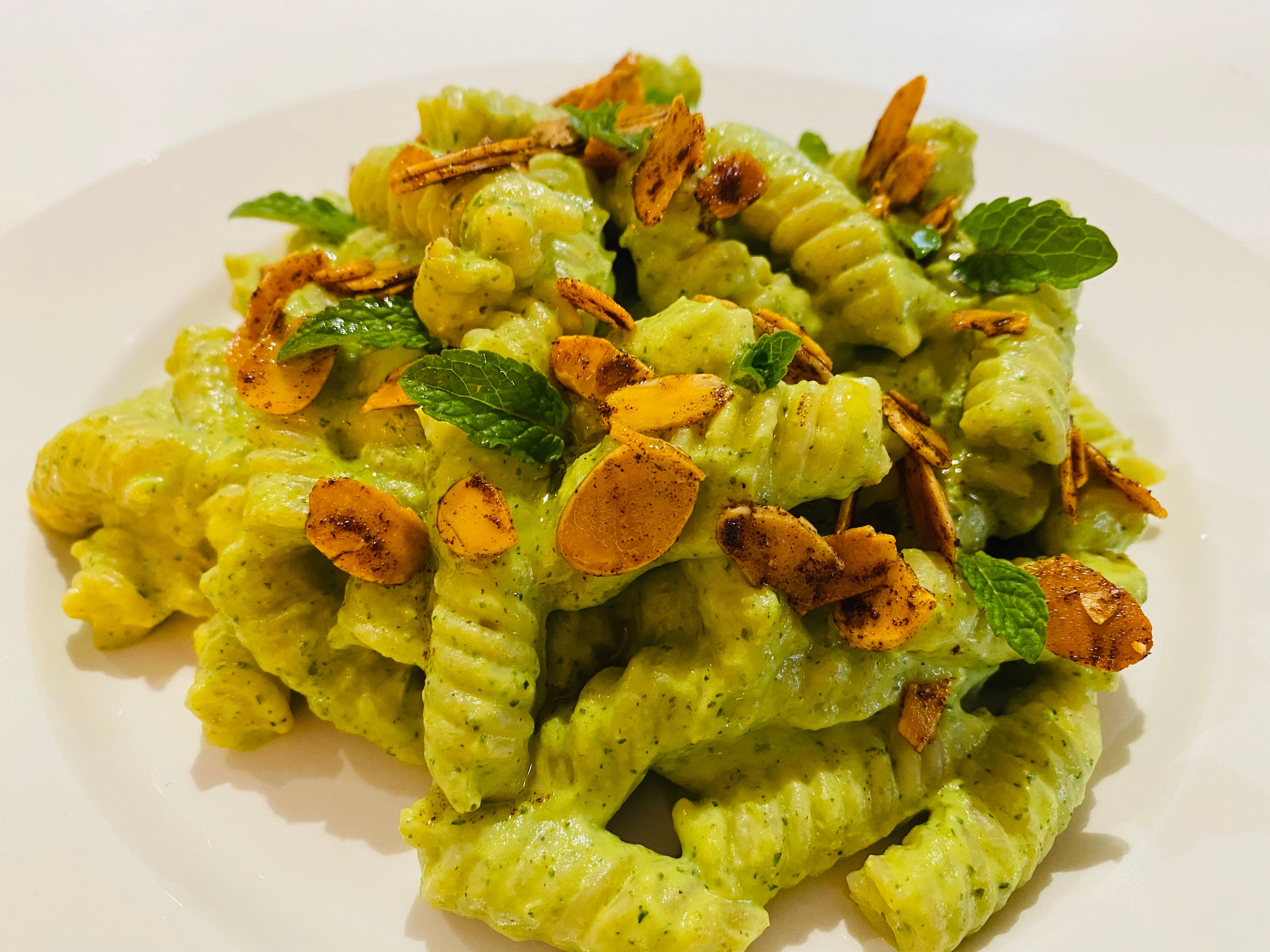 Zucchini pesto pasta is an amazing way to add vegetables in your diet. Such a simple sauce with courgettes, ricotta, mint, garlic and topped with almonds