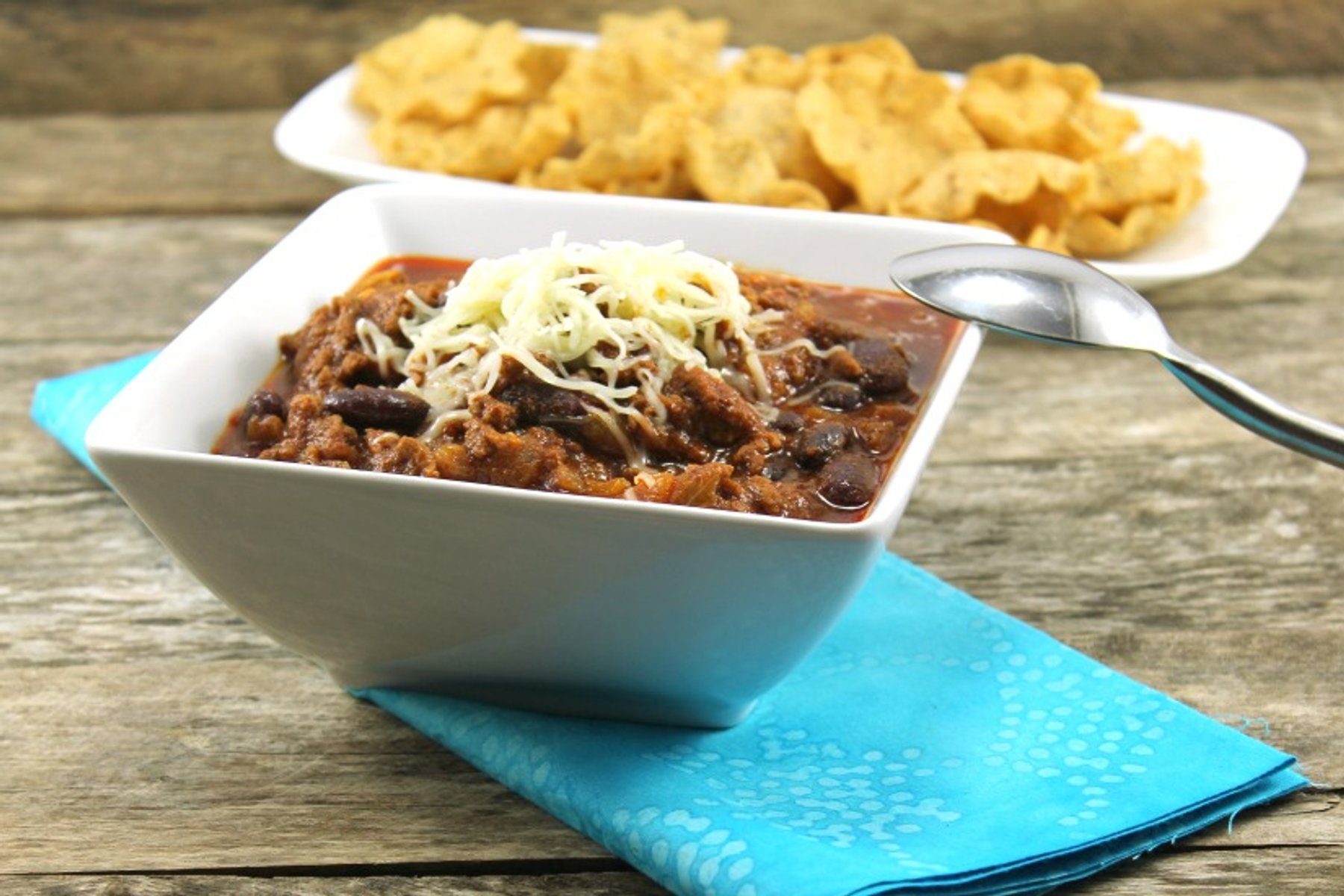 A mild chili (you can add more heat if you like) that will get your kids eating their beans, but it is hearty enough for the brawny men to eat while watching football!