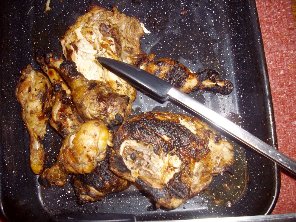 Mix all together with a whisk. Put into a deep bowl or pan with the chicken and marinate up to 18 hours, turning the chicken every so often. The longer you marinate, the tastier it will be.