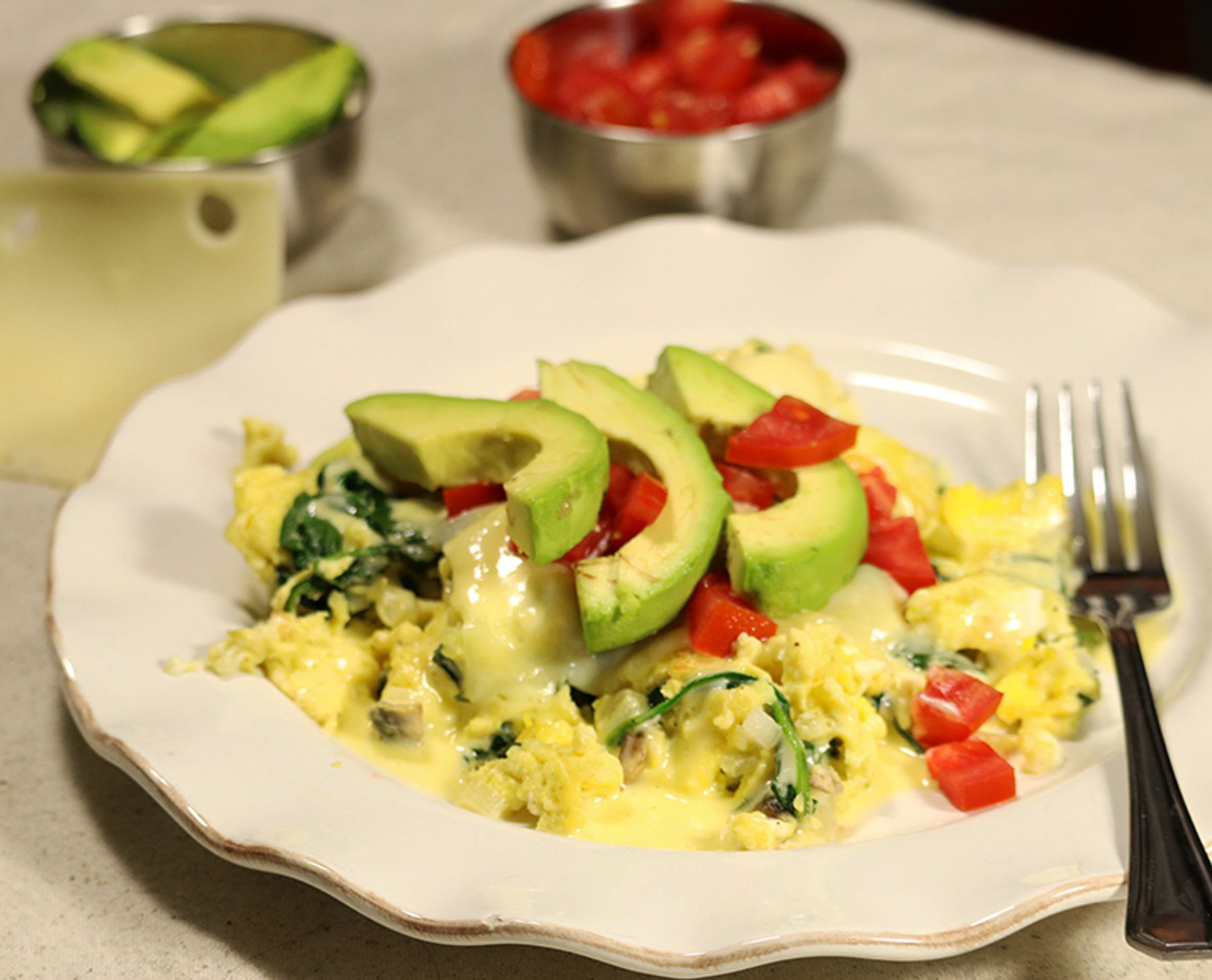 Healthy and delicious, this light, fluffy omelet is filled with fresh garden vegetables and topped with a simply amazing hollandaise sauce.