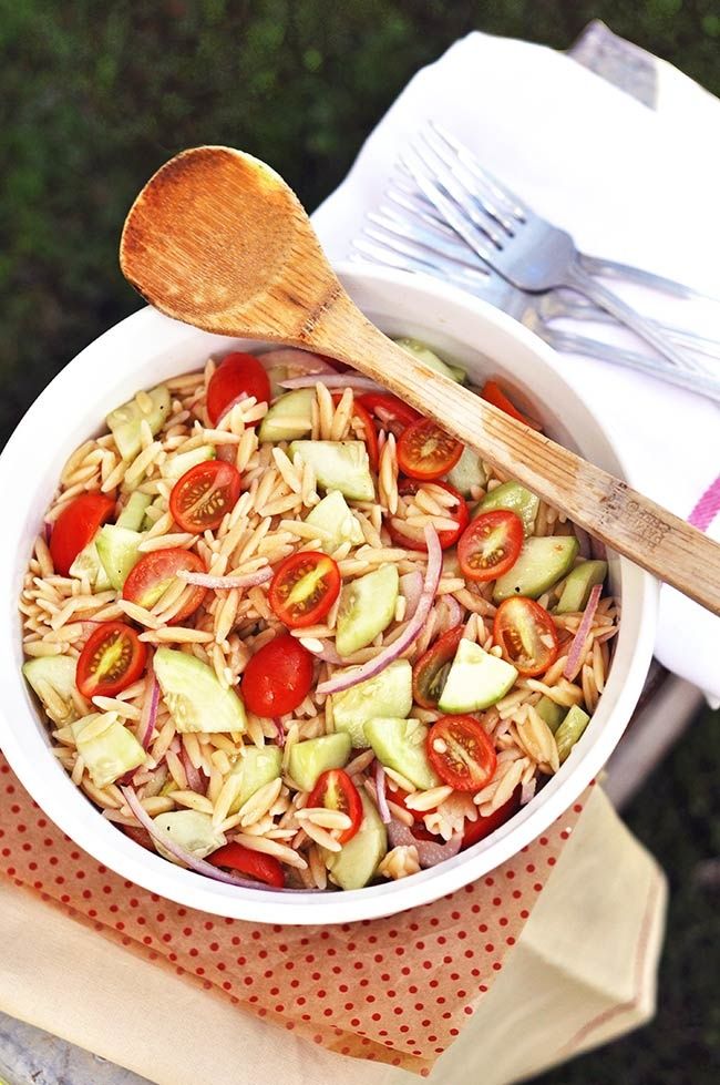 Side Dishes Garden Tomato & Cucumber Orzo Salad mightymrsJuly 13, 2018 34 The perfect light and refreshing summer salad! get the recipe on my site!Check out this delicious recipe!See the full directions on my site