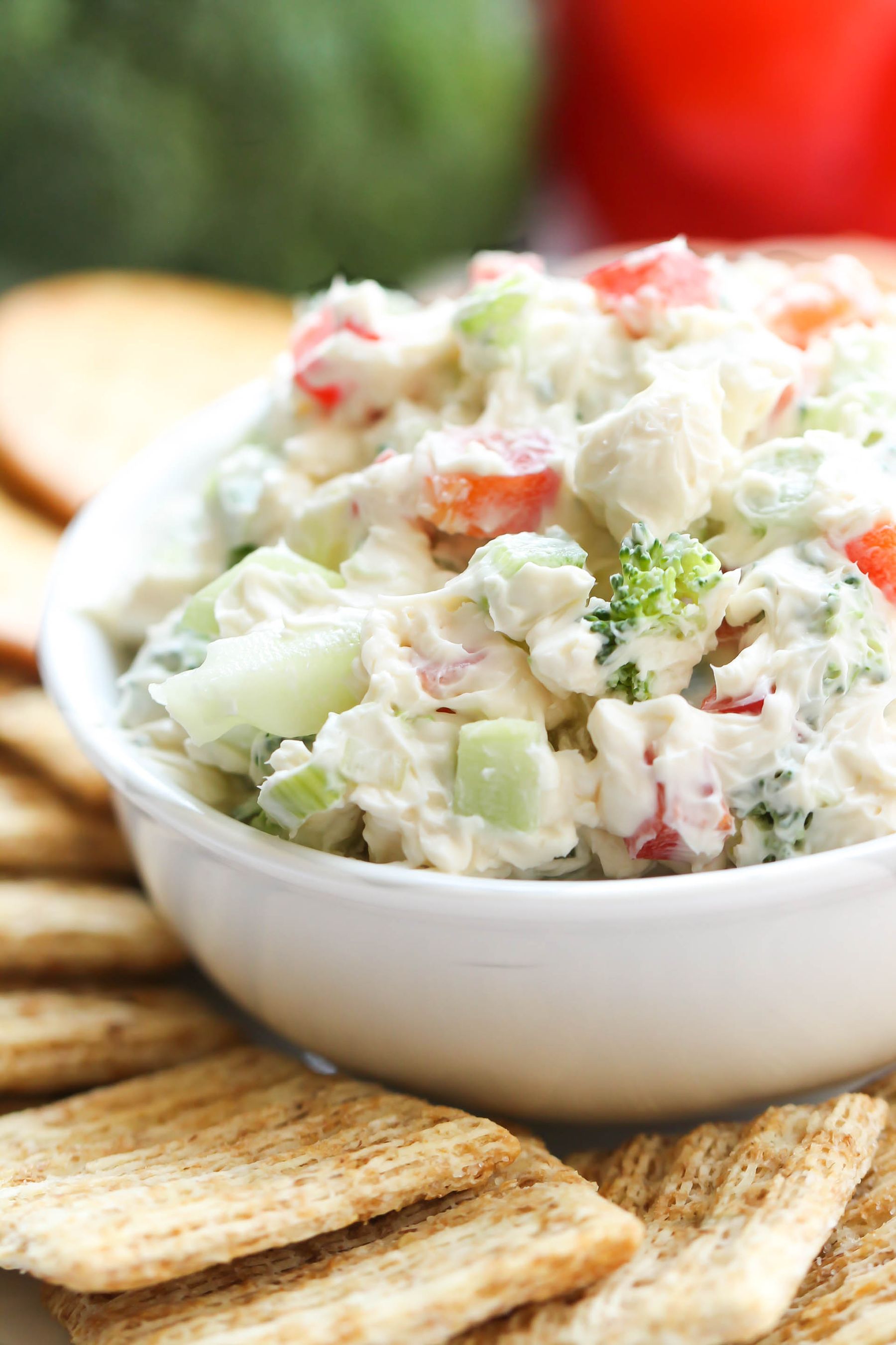 We love this loaded garden veggie dip. It’s great for dipping crackers and the kids have no idea that they are getting veggies in their diet.