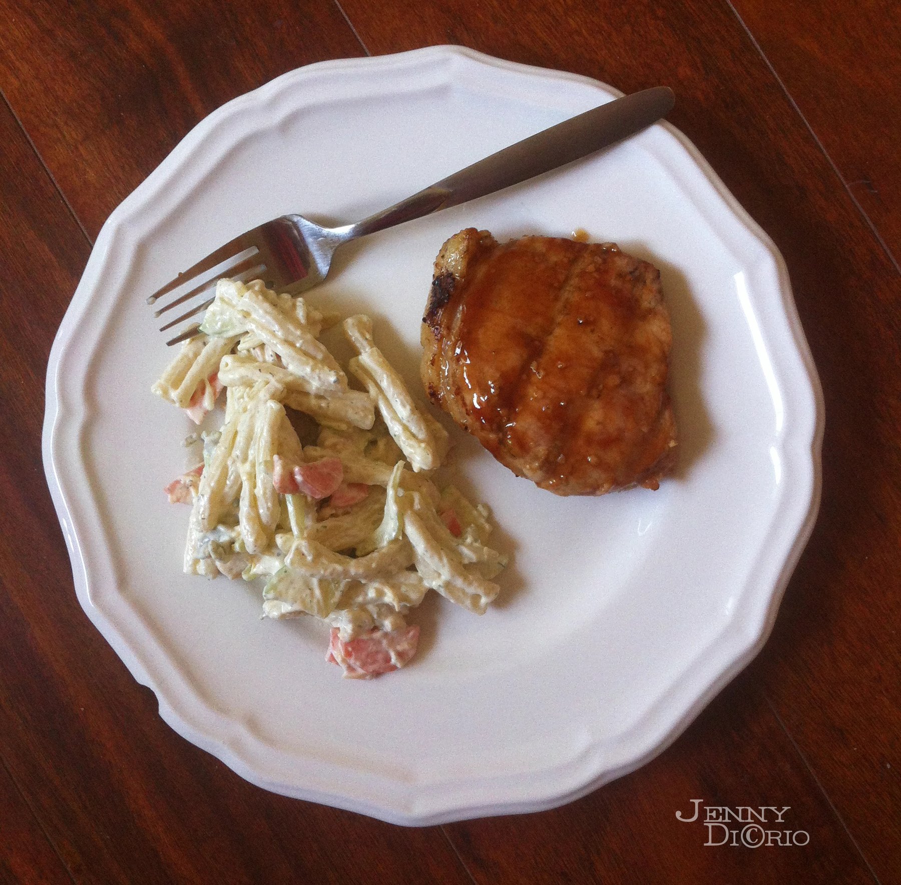 Pork chops marinated in minced garlic and blood orange vinegar. Light and flavorful for those hot summer evenings. Pairs well with a fresh green salad or grilled zucchini, cauliflower and carrots.