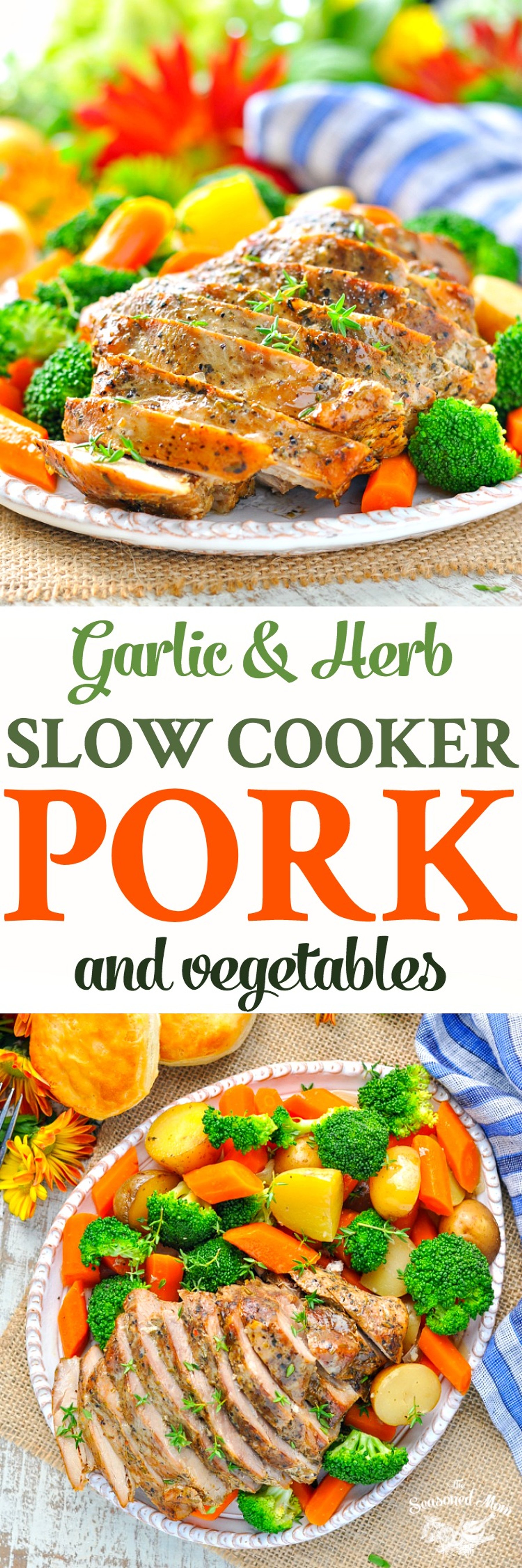With just 10 minutes of prep, this Garlic & Herb Slow Cooker Pork and Vegetables is an easy and healthy dinner to suit your busiest days! Just place everything in the slow cooker, and by the end of the day you will come home to a warm, cozy meal that the entire family will love!