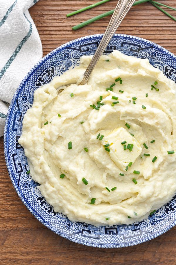 For a lighter side dish, try this flavorful Garlic and Parmesan Cauliflower Mash! The easy mashed cauliflower recipe is made with sour cream, Parmesan cheese and fresh chives for a rich-tasting, low-carb alternative to mashed potatoes.