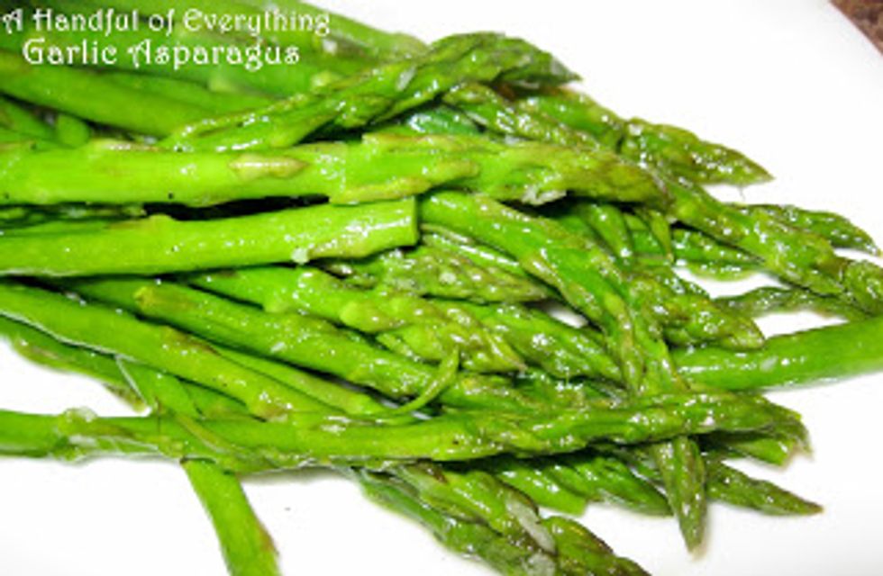 Bring a large skillet up to heat over medium high. Drizzle the olive oil into the pan and add the garlic stirring with a wooden spatula to keep from burning. Add the asparagus, season with salt and pepper...