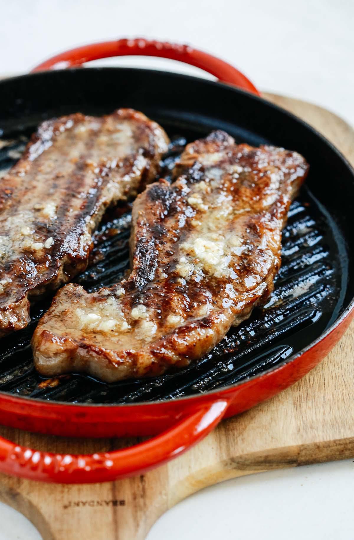 Garlic butter steak Olivia RibasJanuary 13, 2021 16 https://www.primaverakitchen.com/skillet-garlic-butter-steak-recipe/Try itSee the full directions on my site