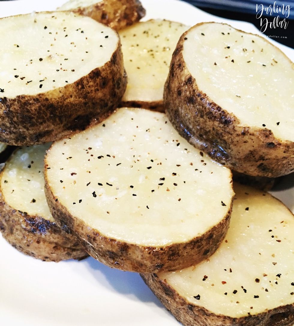 1. Pre-heat oven to 400 degrees 2. Wash and dry potatoes 3.Cut off both ends of the potatoes and discard. Cut the remainder of the potato into 1/2 inch slices. 4. Brush both sides of potato slices with the...