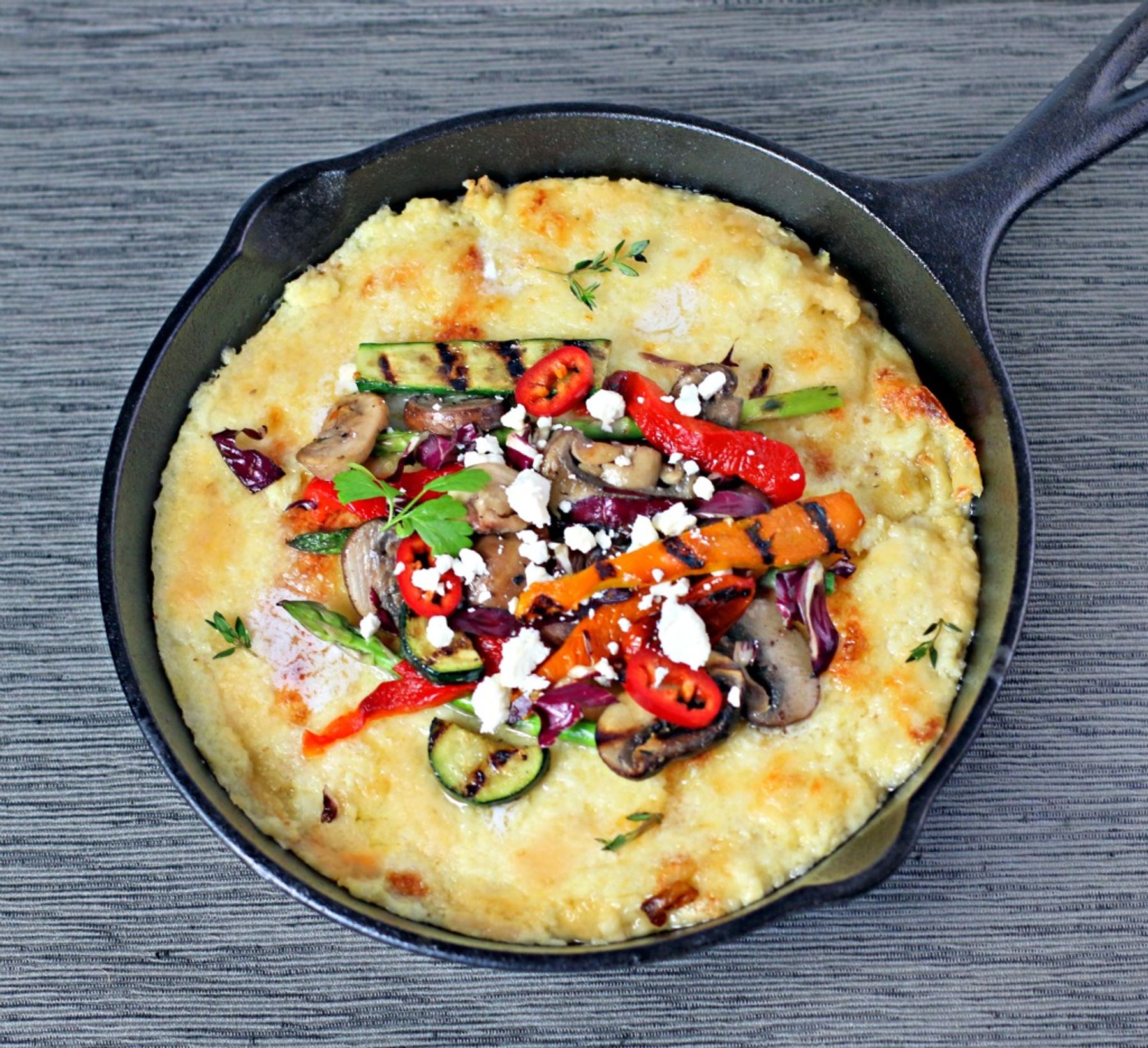 This Garlic White Cheddar Corn Porridge with Roasted Veggies side dish is perfect for any occasion or makes an amazingly hearty and satisfying vegetarian main dish. Wholesome, flavorful and oh so easy to make!