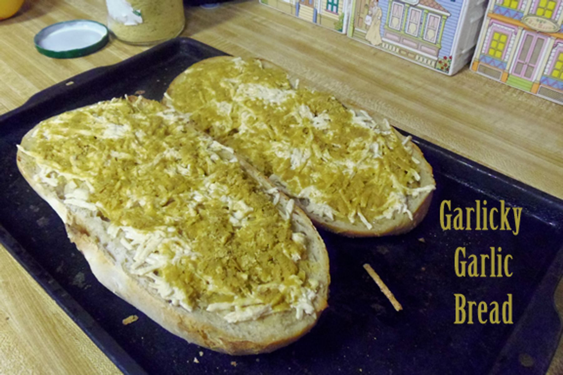 I love Garlic Bread and found a loaf of Garlic Bread at Ward's that had entire cloves of roasted garlic baked into the loaf. OH my GOSH! I brought it home and made this to serve with baked ziti. I forgot to take a pic after it baked and before we devoured it. It is so good, make this today with a loaf of French or Italian Bread or if you can find this type of loaf more power to ya!