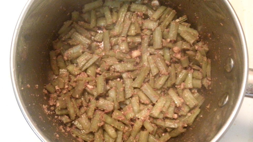 Then add the boiled gavar/cluster beans to it & let it cook for 2 to 3 minutes.