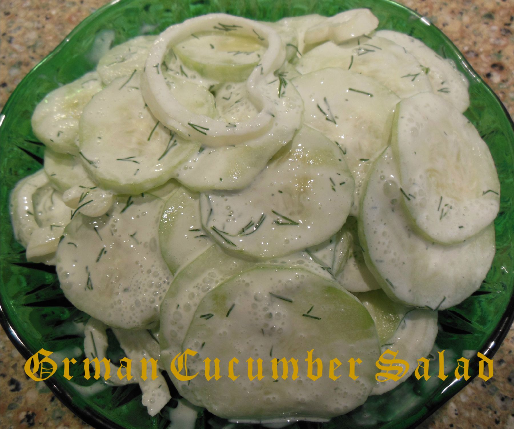 A creamy slightly sour, slightly sweet cucumber salad in the German tradition.