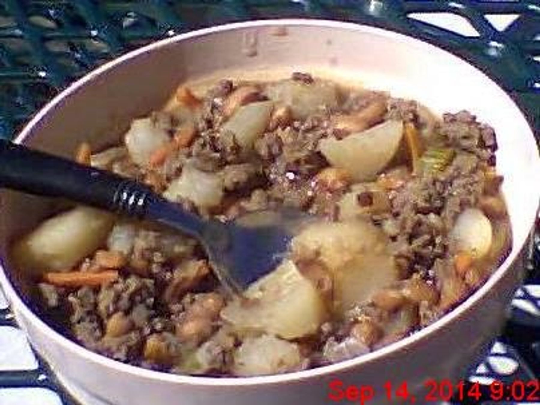 this is wonderful comfort food. It has an ingredient you would find in a southern dish (black eyed peas) but also alot of things found in german recipes hence the name