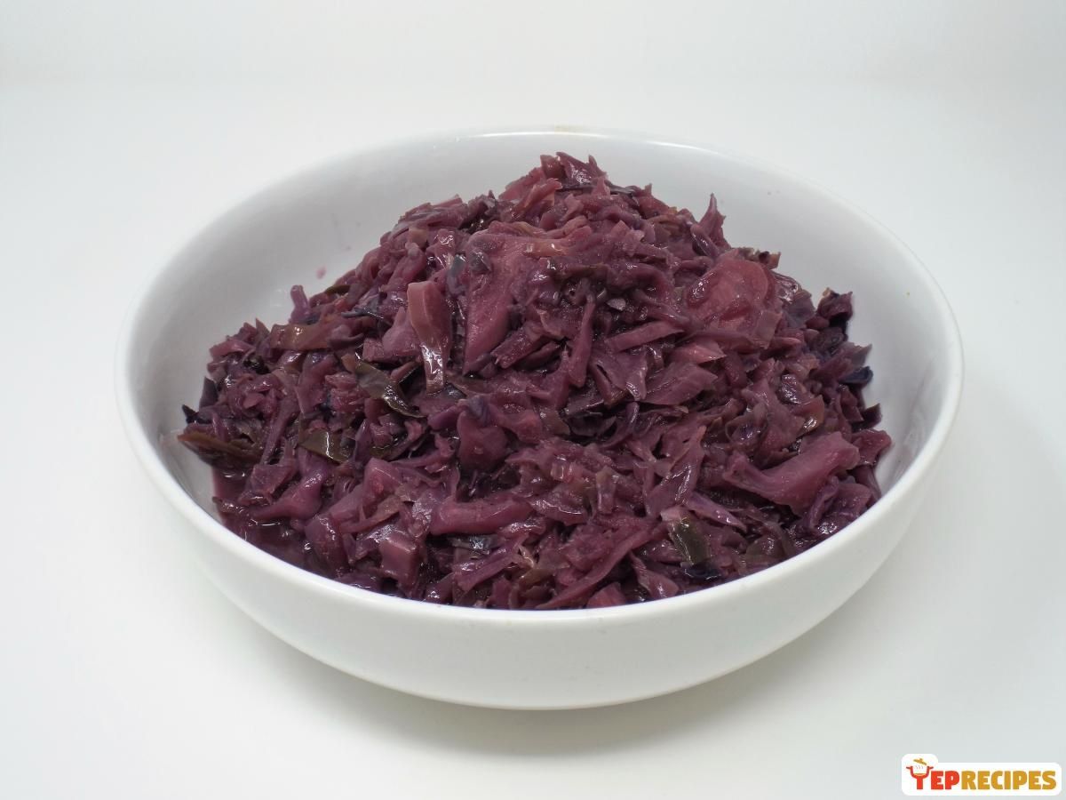 A German red cabbage side dish consisting of red cabbage braised with onions, tart apple, vinegar, and spices.