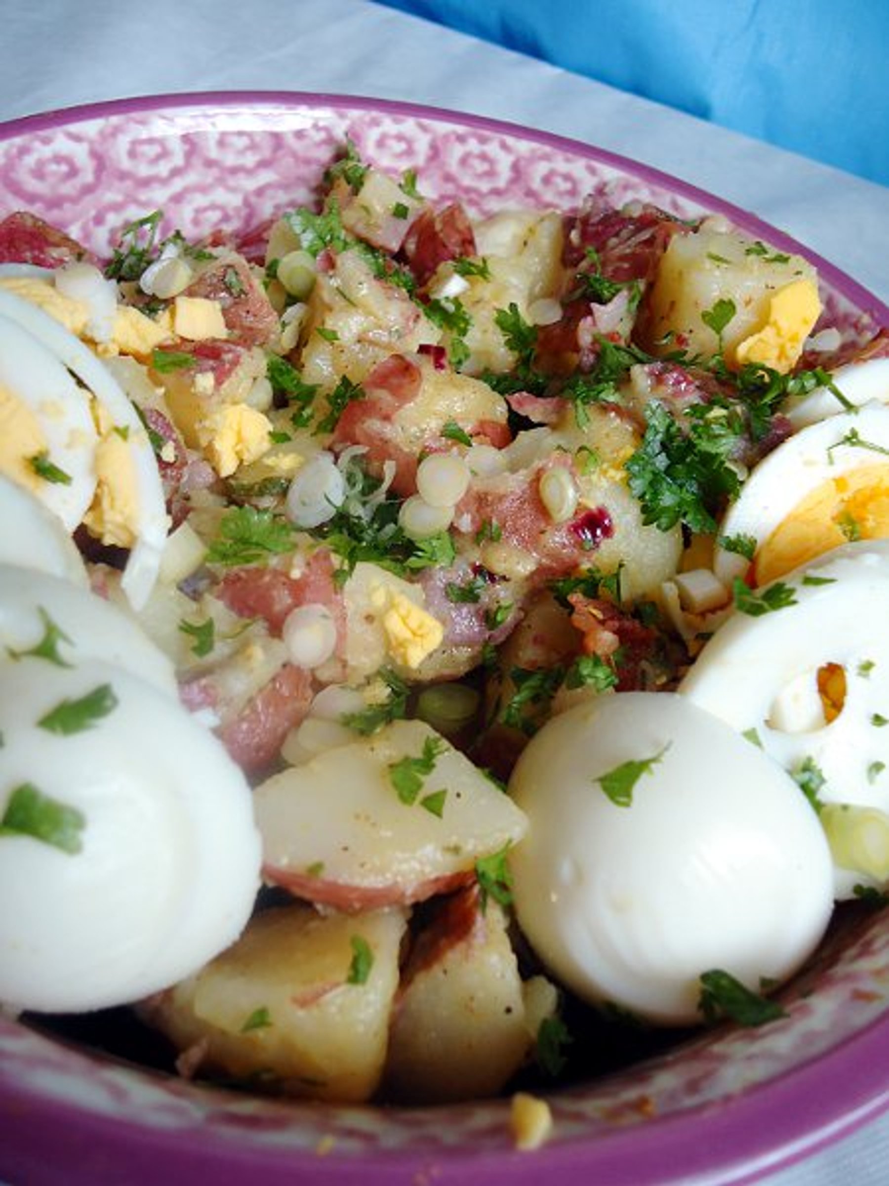 2. While potatoes are cooking, cook bacon in a small saute pan. Remove bacon once crispy, but do not drain the...