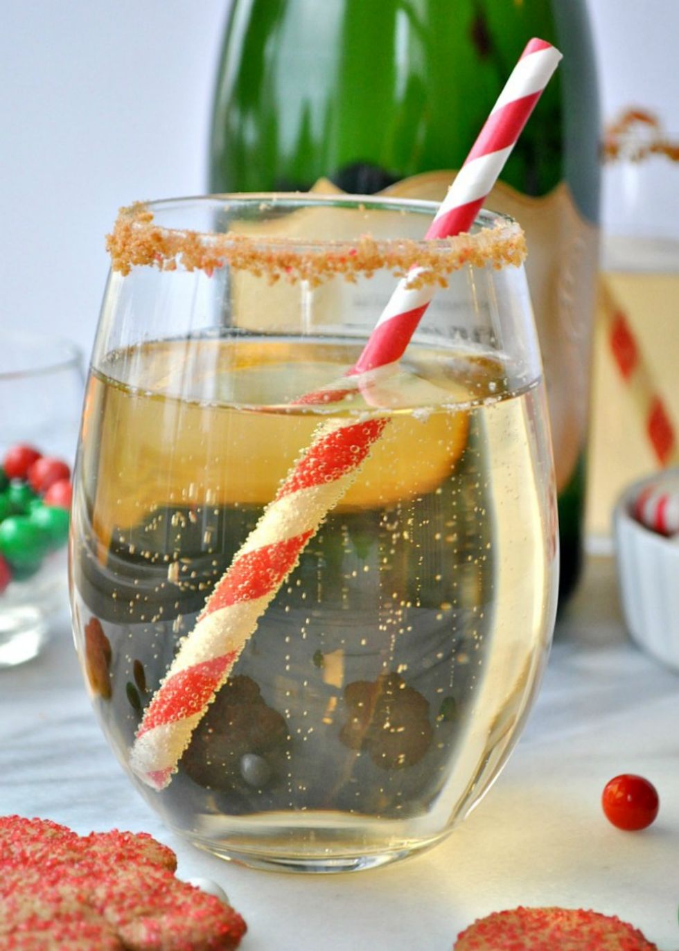 This Ginger Champagne Cocktail is a fun and festive drink for your Christmas party or New Year's Eve celebration! The simple and quick seasonal beverage is perfect for a cookie exchange, a happy hour with the girls, or any other holiday gathering!