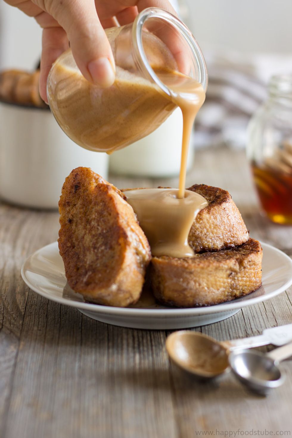Make your loved ones gingerbread French toast with cinnamon honey sauce! A great breakfast-in-bed or brunch recipe with a hint of Christmas.