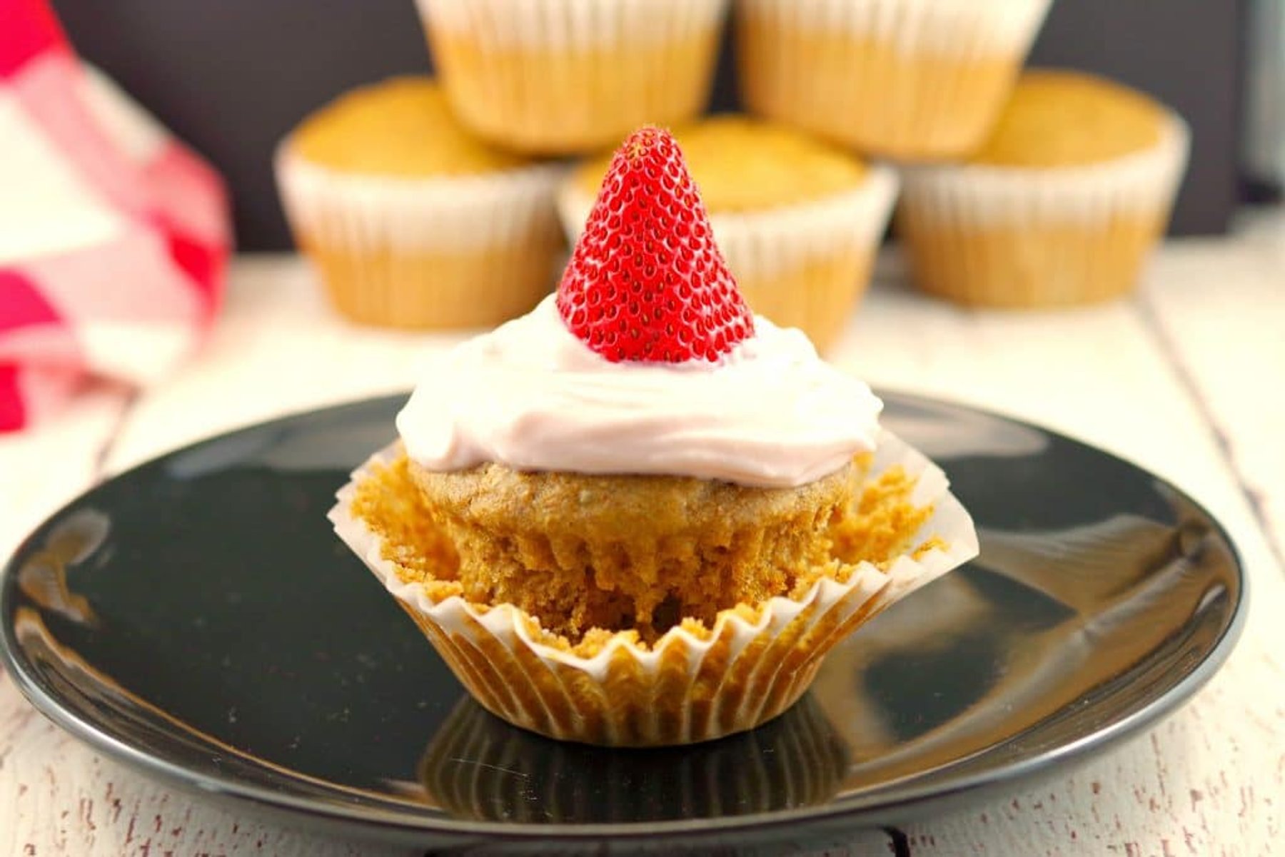 Healthy Cupcakes for breakfast! This breakfast gingerbread pupcake is a kid-friendly pancake cupcake hybrid recipe with strawberry Greek yogurt topping that is both healthy and fun!