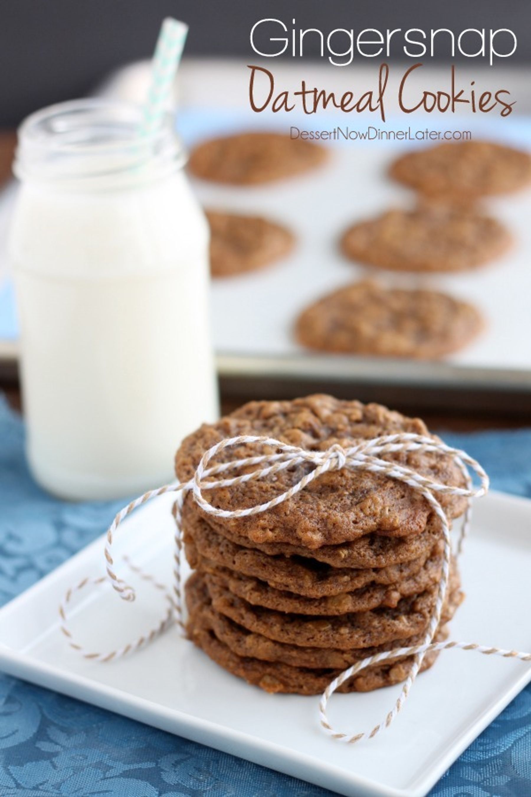 Soft baked gingersnap cookies with the addition of old fashioned oats makes a chewy, delectable cookie!