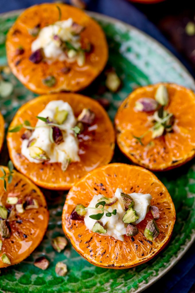 Glazed Clementines + Cream Cheese, Honey & Pistachios