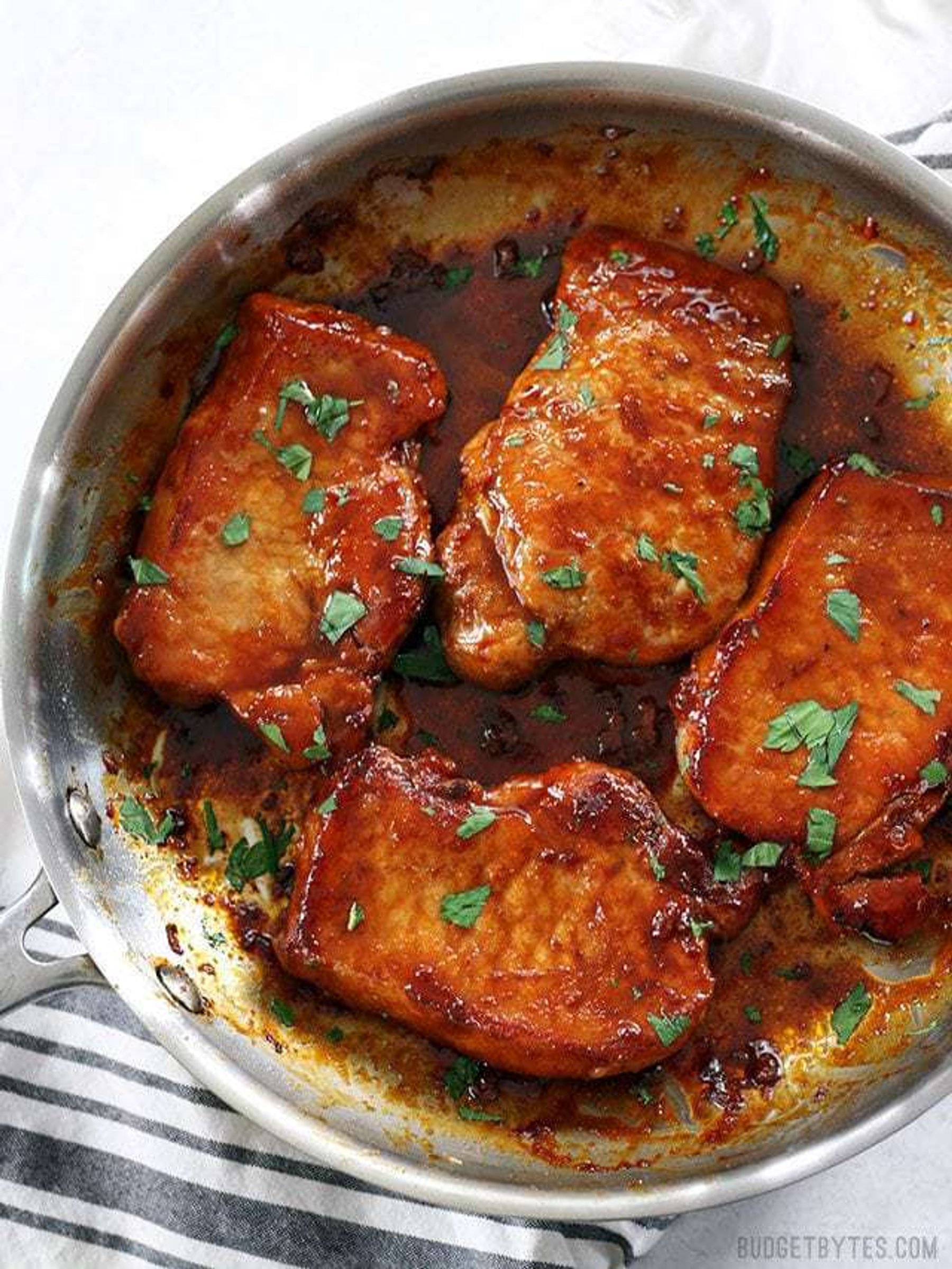 Glazed Pork Chops - Easy, Fast, Juicy! - with VIDEO - Budget Bytes Chef ErnieJuly 17, 2019 353 www.budgetbytes.com Try itSee the full directions on my site These juicy Glazed Pork Chops are sweet, salty, and a little spicy. They cook quickly for a fast, easy, and delicious weeknight dinner!Garlic PowderOlive OilPorkTop RecipesMain DishCayennePaprikaGluten freeUnder $3 per servingPork ChopsBrown SugarQuickRecipes under $10Meat Recipesbudgetbytes.com
