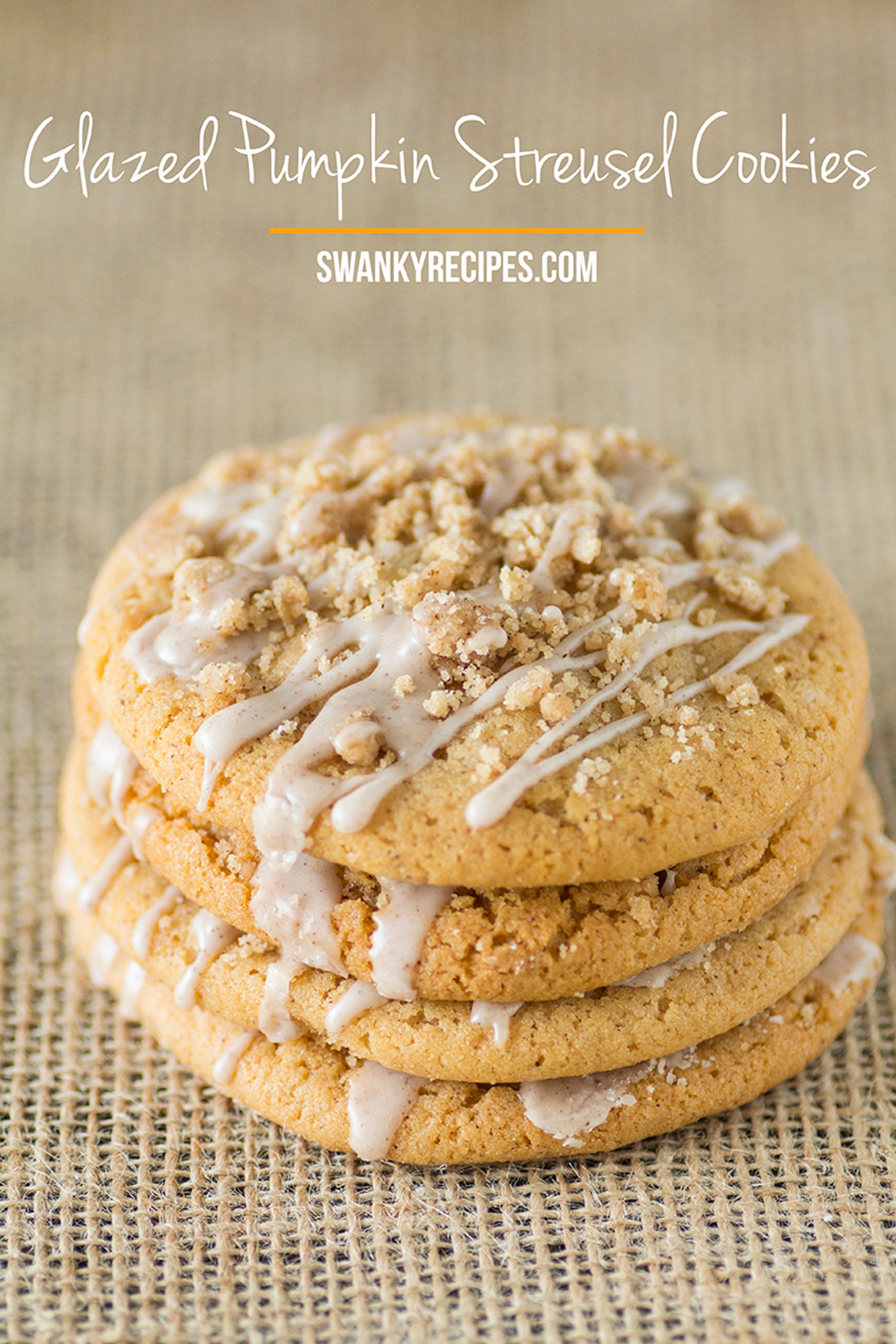 Moist and chewy bakery style pumpkin cookies with a pumpkin glaze and streusel topping.