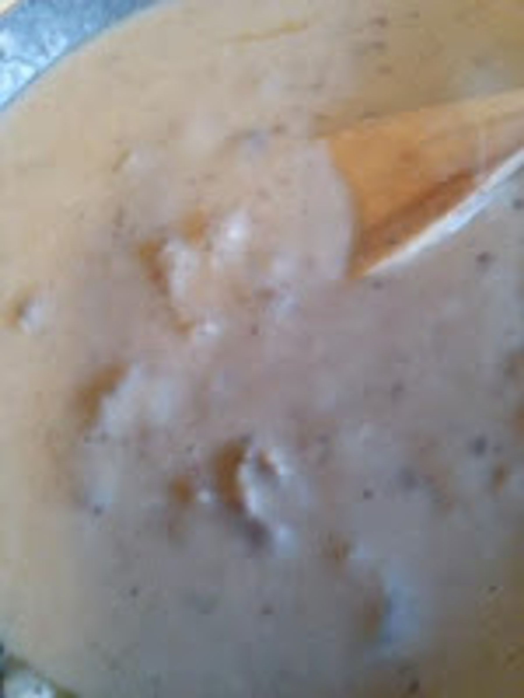 This is made without any flour and it is very easy. Please give it a try even if it doesn't sound good to you right off the bat. If you are eating gluten free and/or dairy free this is a great comfort food.