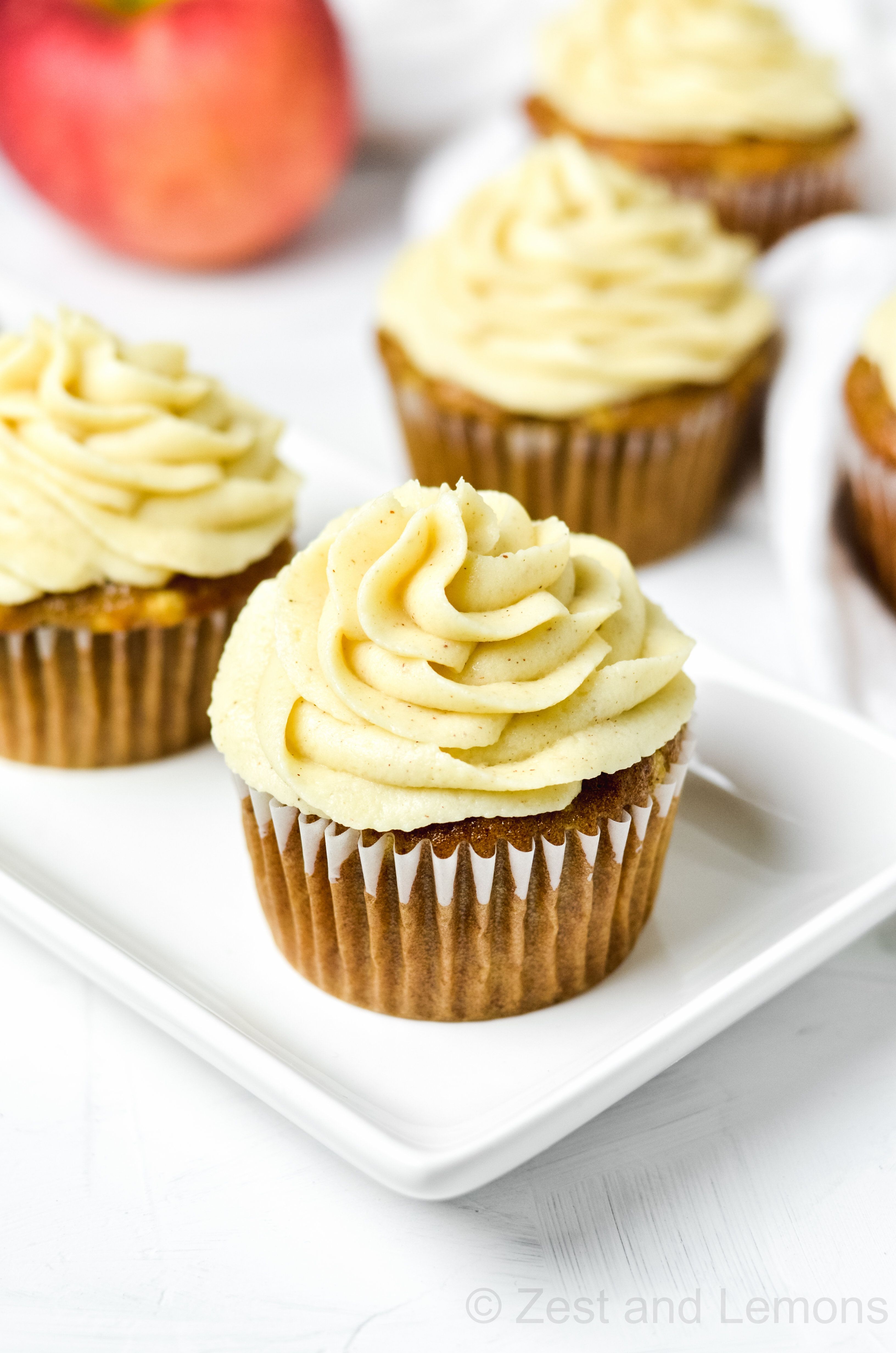 These gluten free apple spice cupcakes feature a moist and flavorful apple cake, and are topped with a cinnamon mascarpone frosting.