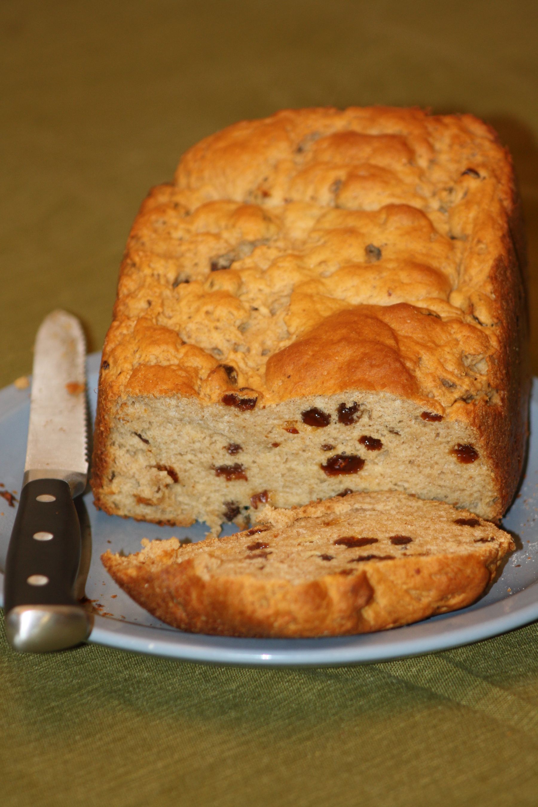 Combine flour, starch, milk powder, sugar, xanthan gum, yeast, salt and cinnamon into a bowl. Mix well. Pour water, oil and vinegar into bread machine and eggs. Select white bread setting and start mixer. Slowly add dry ingredients. Add raisins last.