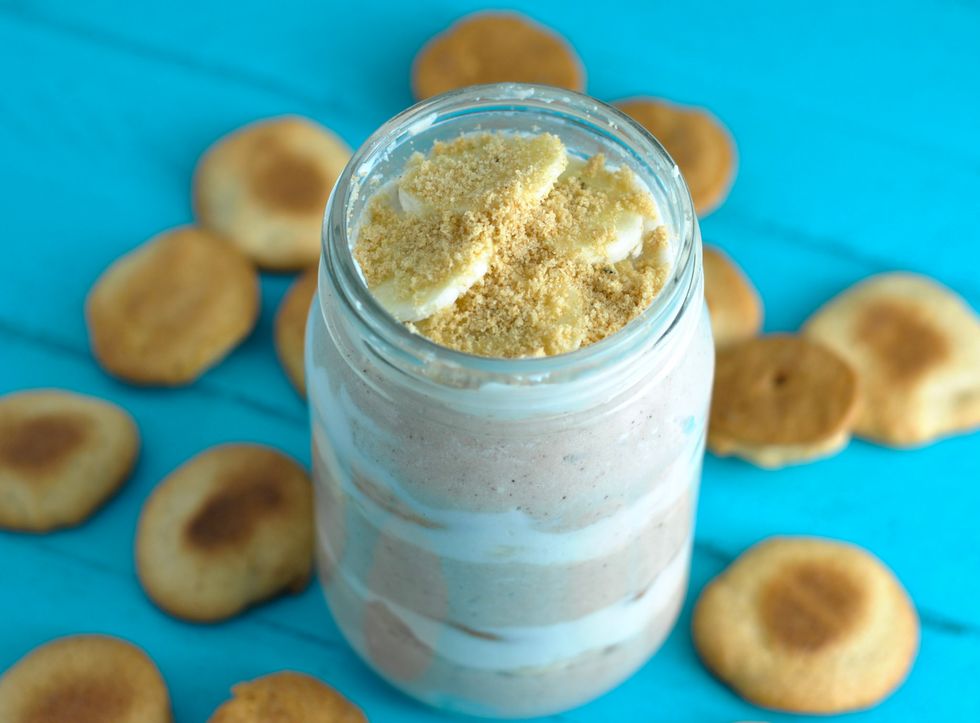 Classic banana pudding gets a makeover l with caramelized bananas, maple syrup, coconut cream, homemade gluten free nilla wafers.