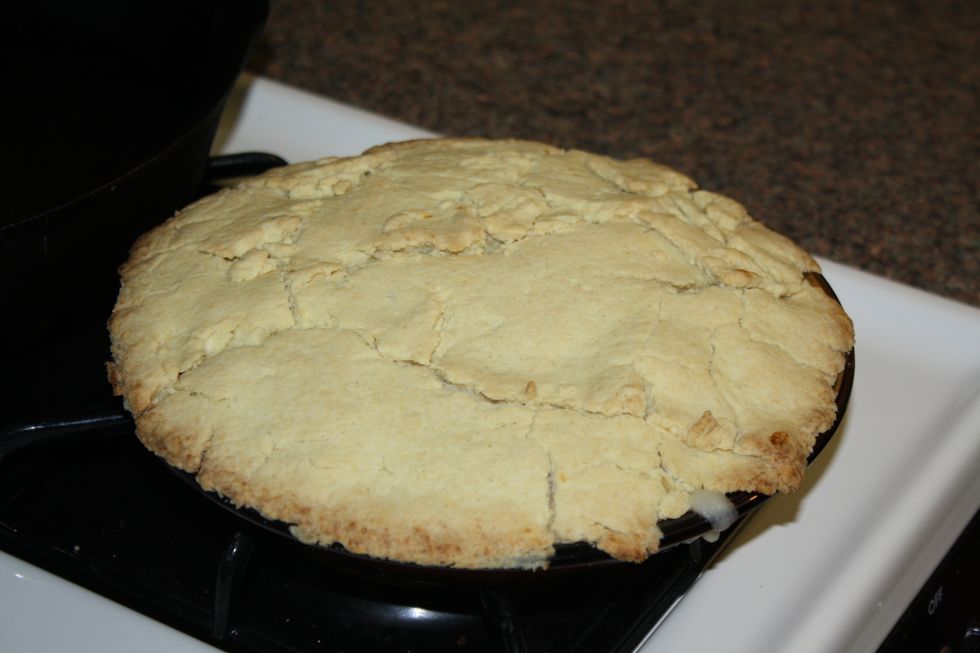 Heat margarine over low heat until melted. Blend in flour, onion, salt and pepper. Cook over low heat, stir constantly until mixture is smooth and bubbly; remove from heat. Stir in broth and milk. Heat to boiling, stir. Boil and stir one minute. Stir in chicken and frozen vegetable reserve. Prepare gluten free pastry. Pour filling into pastry. Roll remaining dough and place over filling. Cook uncovered at 425 for 30-35 minutes.