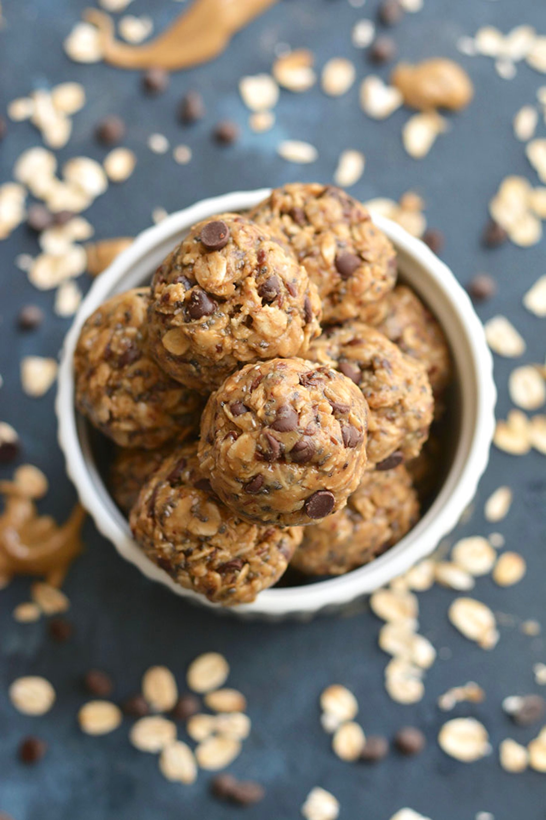 Chocolate Almond Bites made with oats, almond butter, chocolate, flax and chia seeds are a healthy no-bake snack for those with a sweet tooth. The perfect lunchbox friendly snack bite! Gluten Free + Low Calorie