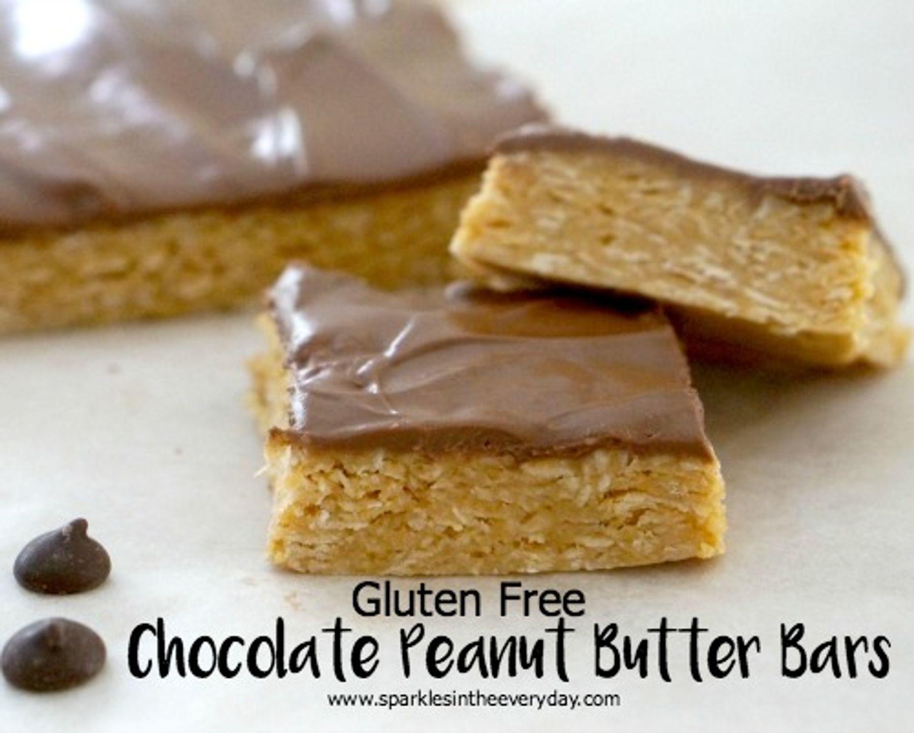 These Gluten Free Chocolate Peanut Butter Bars are so easy to make, they don’t need baking and they are delicious…very hard to stop at one!!
