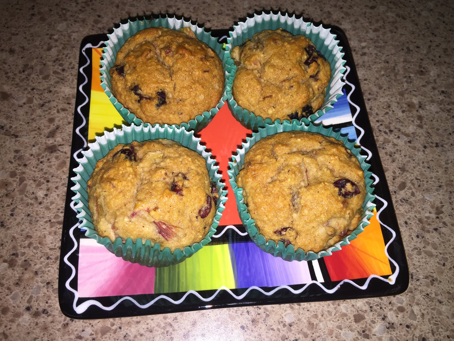 Gluten Free Cranberry Rhubarb Pecan Muffins