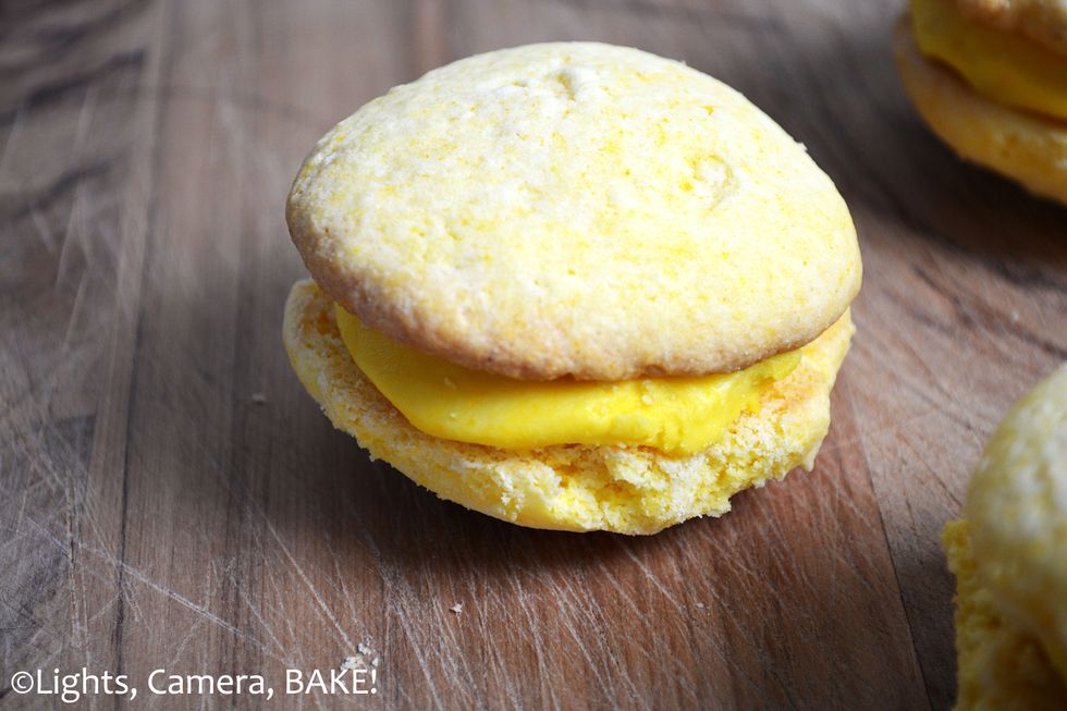 Melt-in-the-mouth gluten free custard shortbread-like cookies with a custard buttercream sandwiched in between.