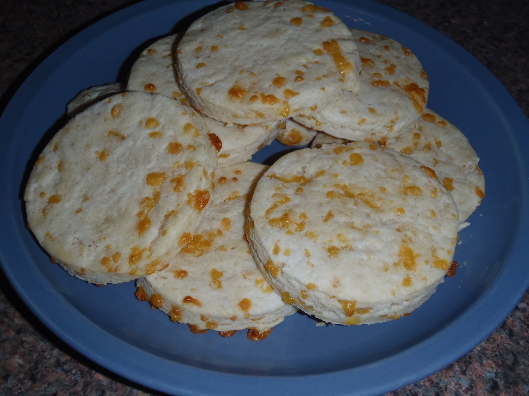 Mix dry ingredients and cut butter into mixture. Add milk. Once mixed together add cheese. Roll out and drop onto greased sheet. Brush with butter and garlic salt. Bake 12-15 minutes