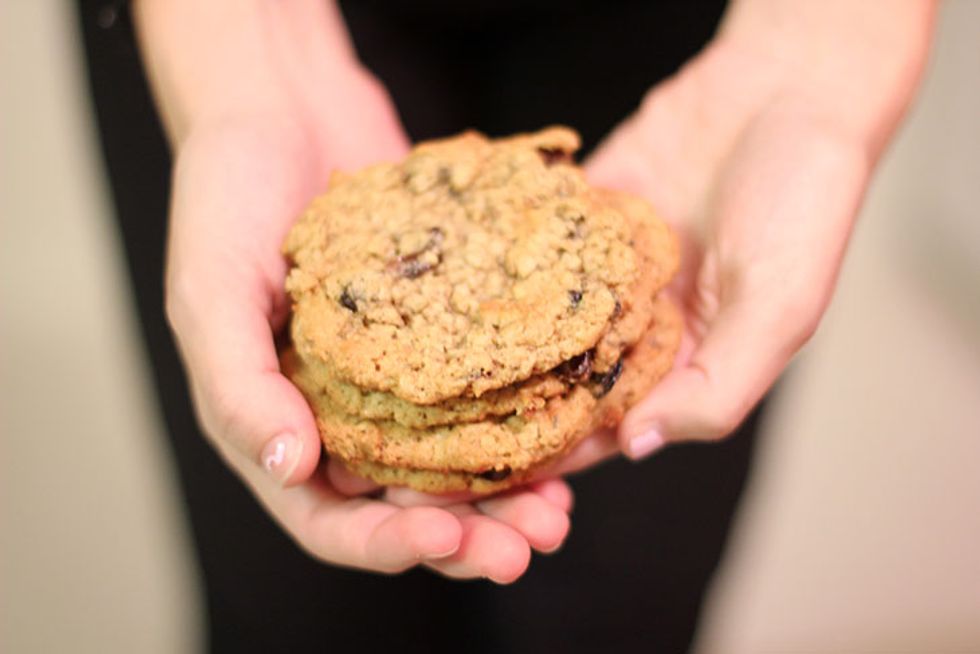 Mix together. Add raisins & stir. Bake at 350 for 8-10 minutes.