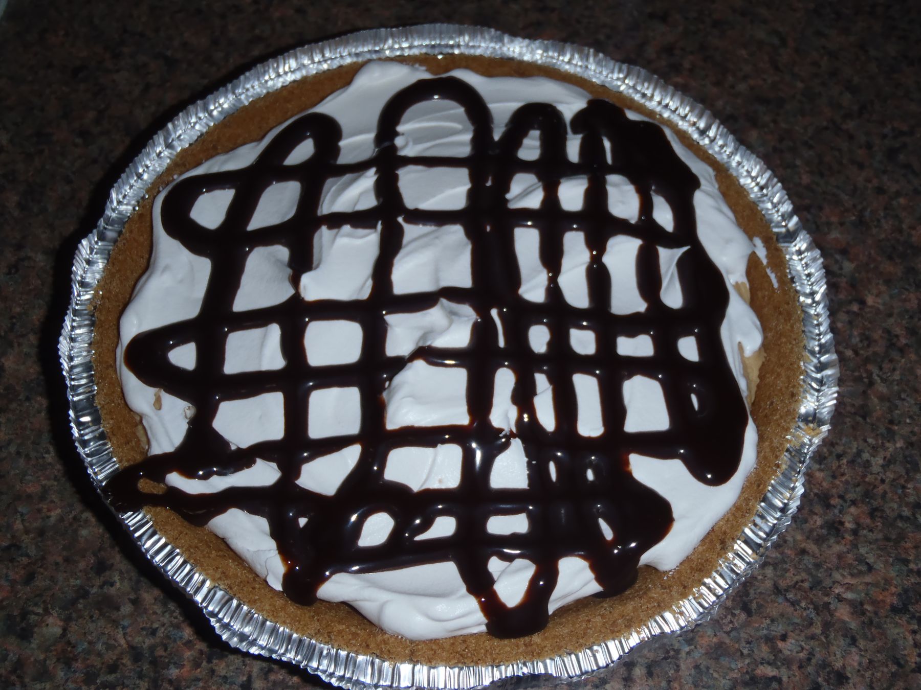Cream peanut butter, cream cheese and powder sugar. Fold in cool whip reserving 1/3 for topping. Freeze in pie crust 2 hours. Remove and top with cool whip and syrup.