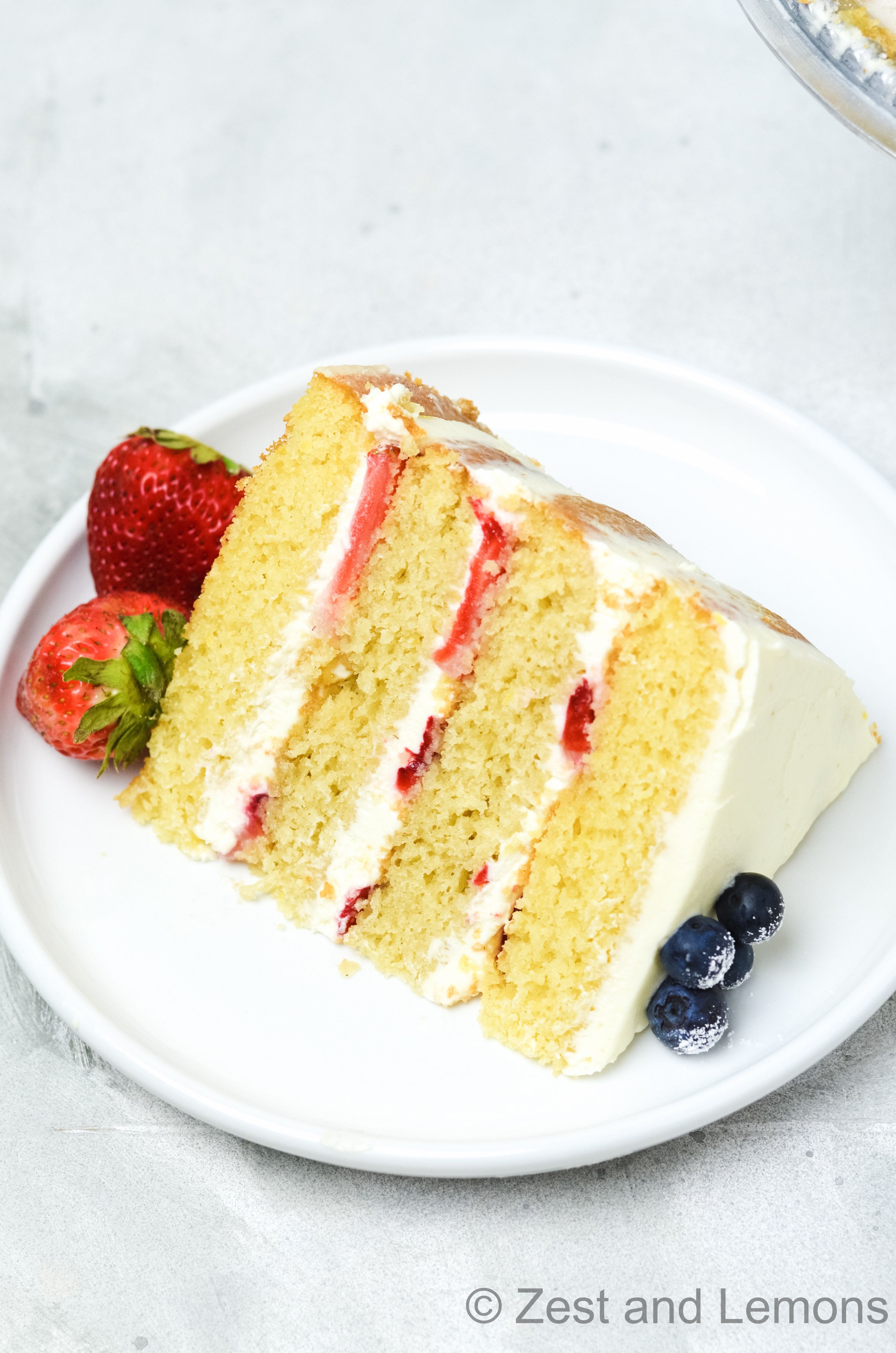 A light citrus-flavored sponge cake that's filled and frosted minimally with a whipped cream cheese frosting, and layered with fresh strawberries. This naked cake is the perfect summer dessert!