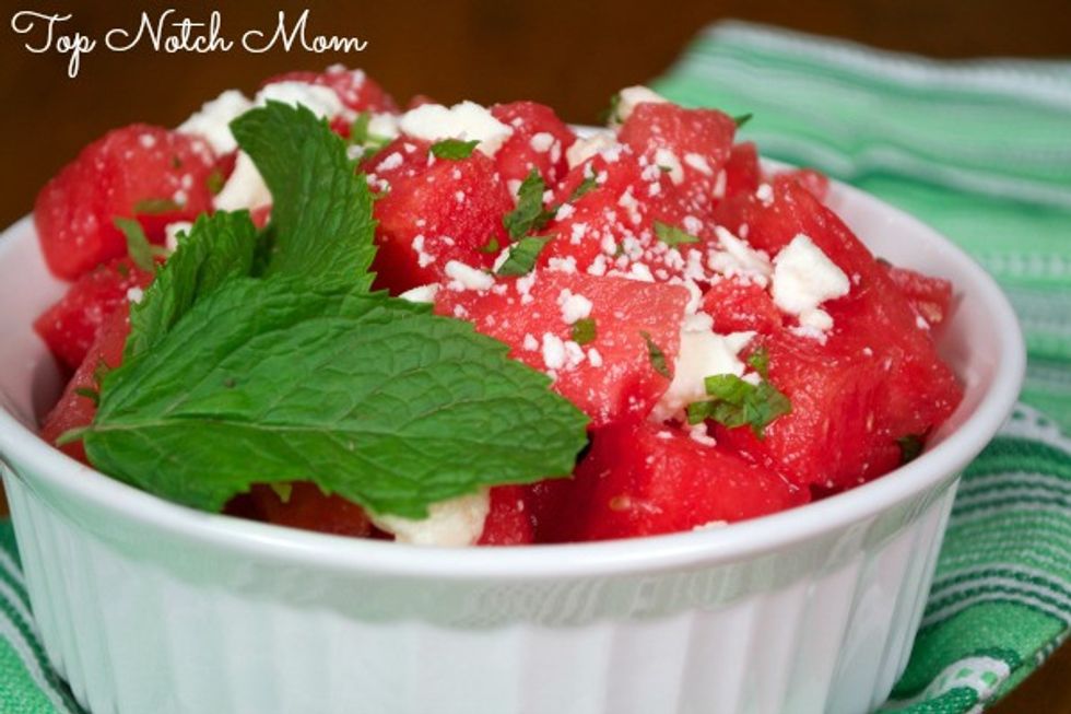 Combine watermelon, feta cheese and mint in a bowl