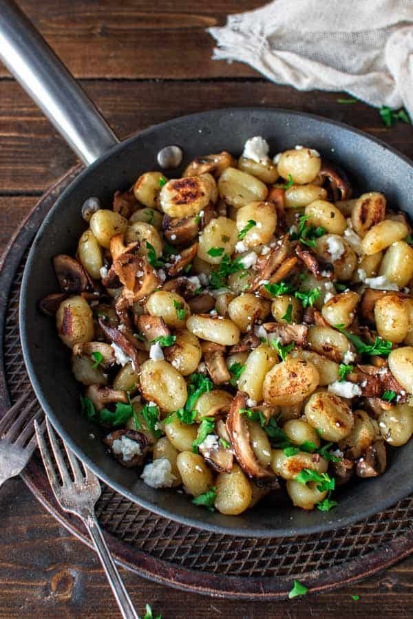 These delightful One-Pot Potato Gnocchi with Mushrooms and Feta are so easy to make, so filling and so tasty. Made in under 30 minutes, this vegetarian dish is worth trying!
