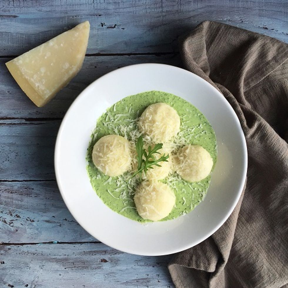 Gnudi with Arugula Greek Yogurt Pesto
