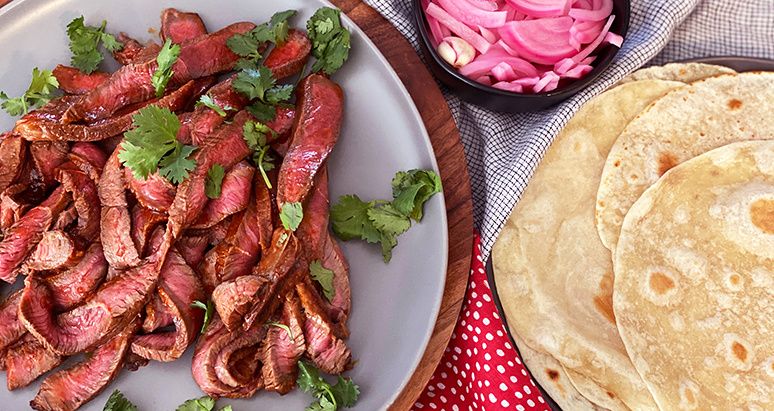This Gochujang (Korean red chili paste) marinated Fullblood Wagyu steak is delicious, juicy, and spicy! Grilled, sliced, and served with warm tortillas and pickled onions, the steak is flavorful and easy to make! Try this recipe next time you're craving steak!