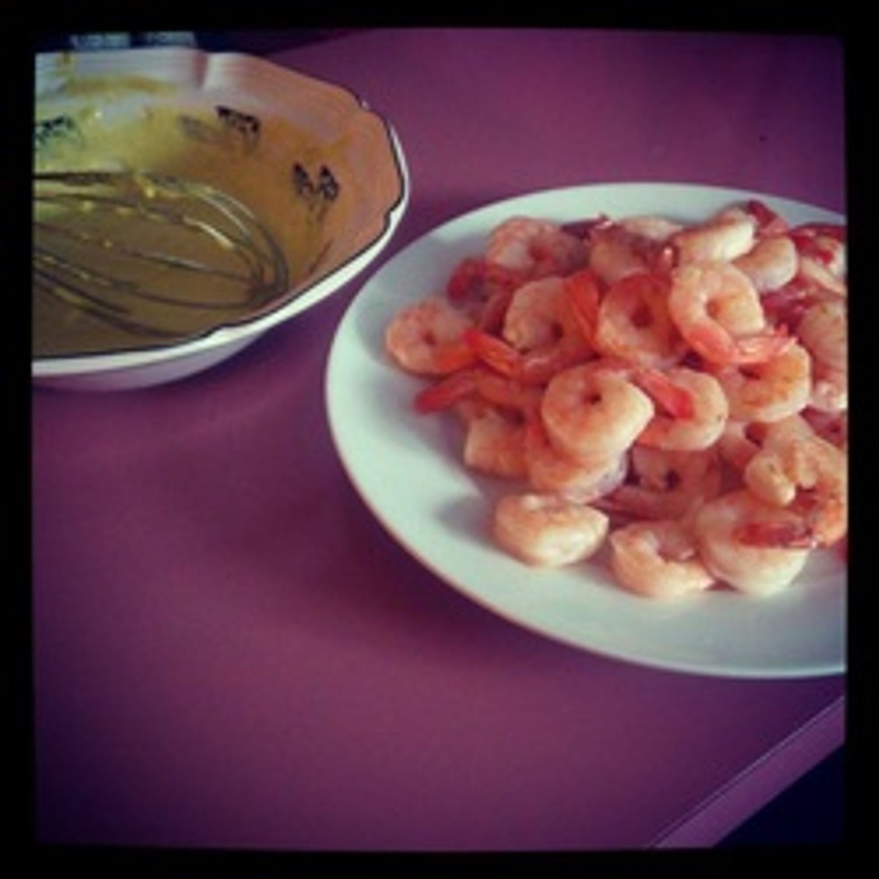 Beautiful garlic prawns with healthy home made mayo is perfect healthy meal or a partysnack