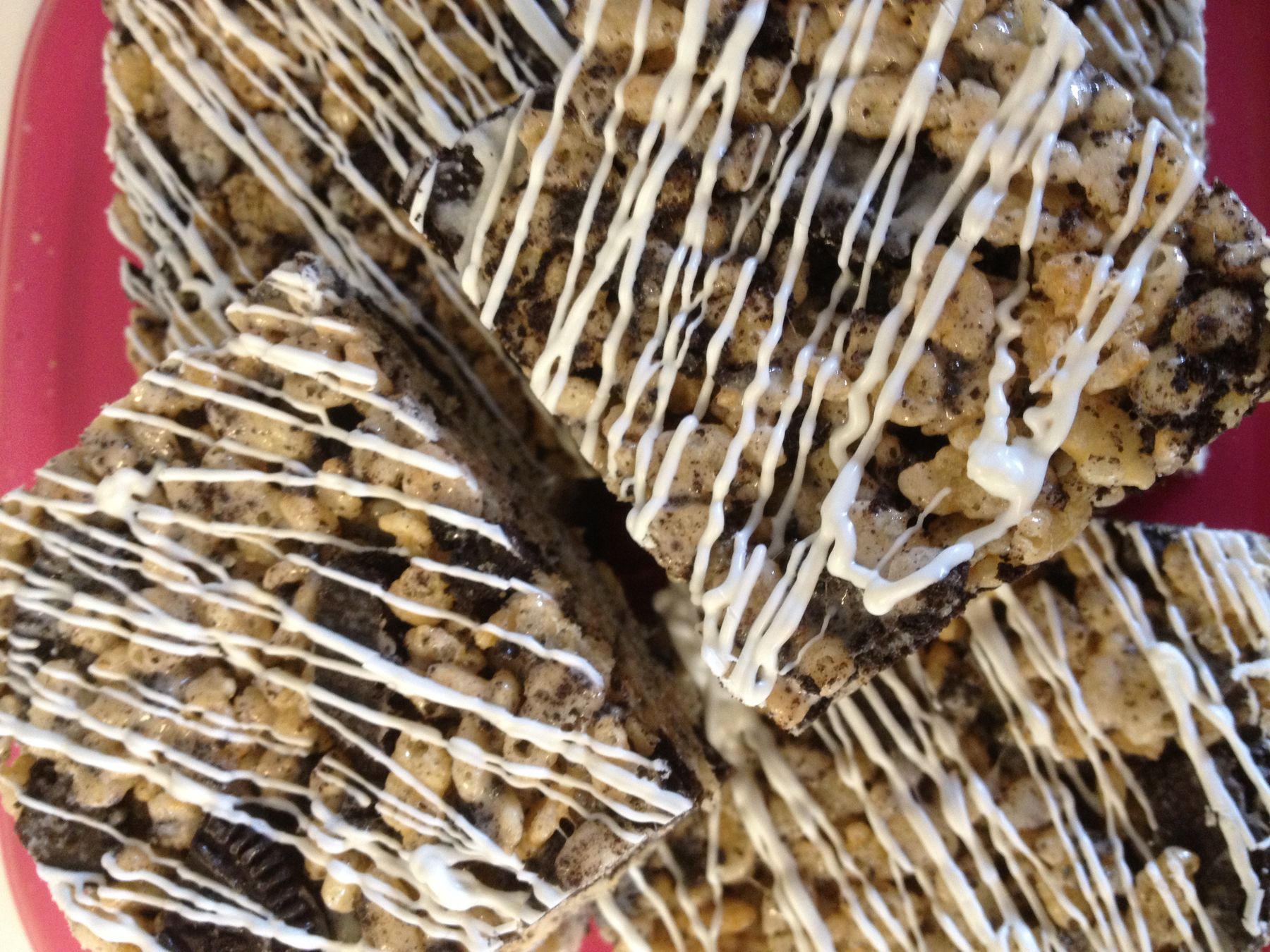 Rice Krispies treats made even better with chunks of Golden Oreo Cookies mixed in. Great creamy vanilla flavor!