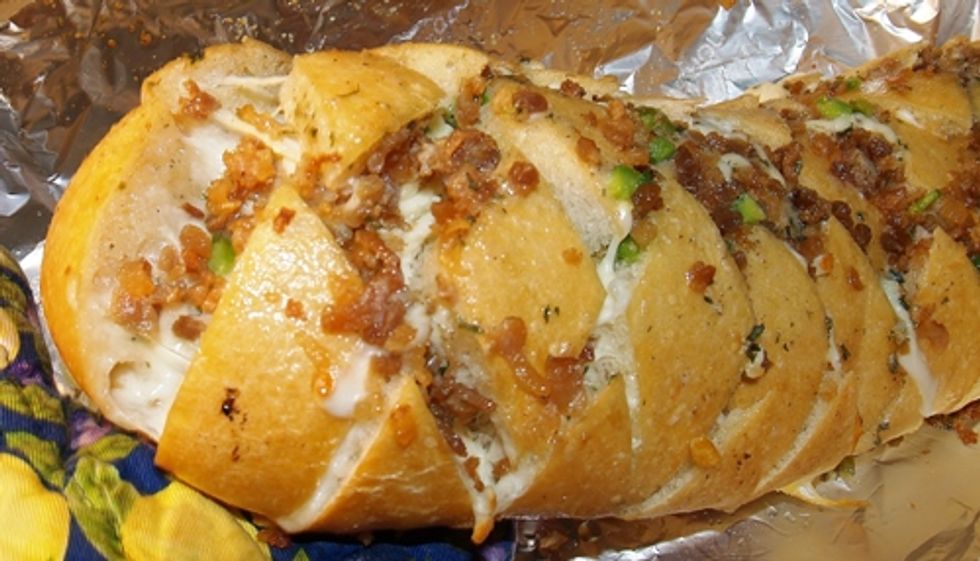 A loaf of bread, melty cheese, bacon and ranch dressing - It's heaven, I tell ya! You will not be able to stop eating. It's perfect for movie night, ball game night, tailgating and studying. I really can't think of a time or place it is not and I "hear" it is THE dish for that solo pity party - not that I would know, of course,