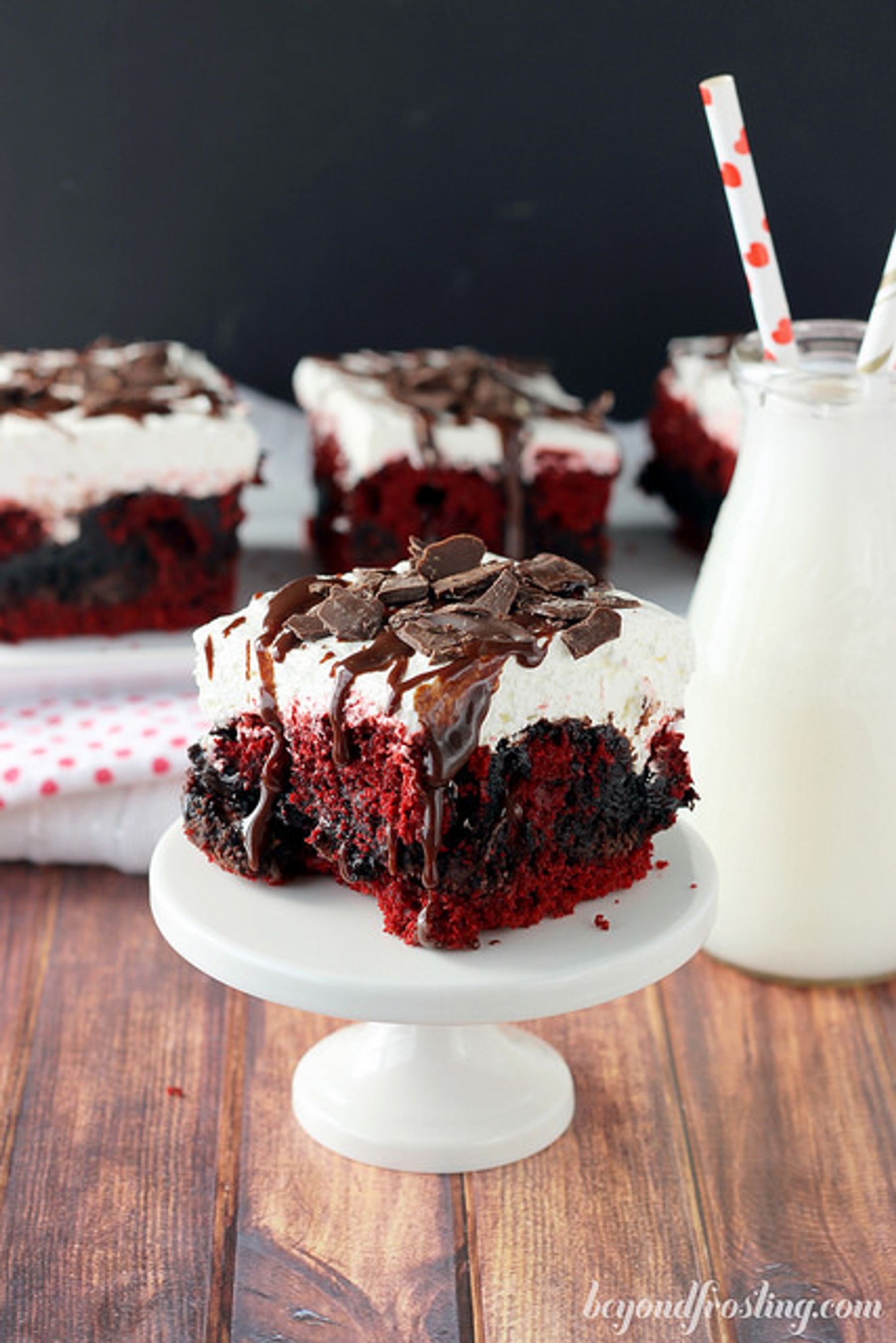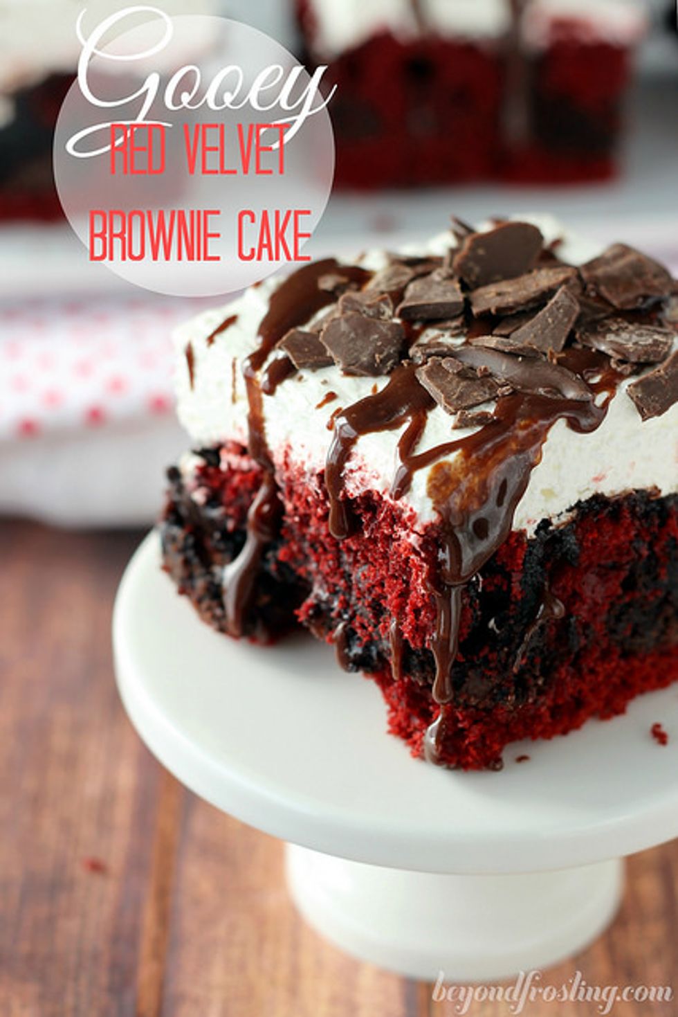 A sweet and moist red velvet brownie cake that is impossible to resist!