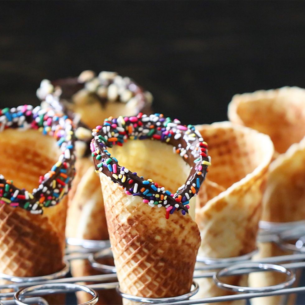 A simple and deliciously crunchy grain-free + dairy-free Waffle Cone recipe.